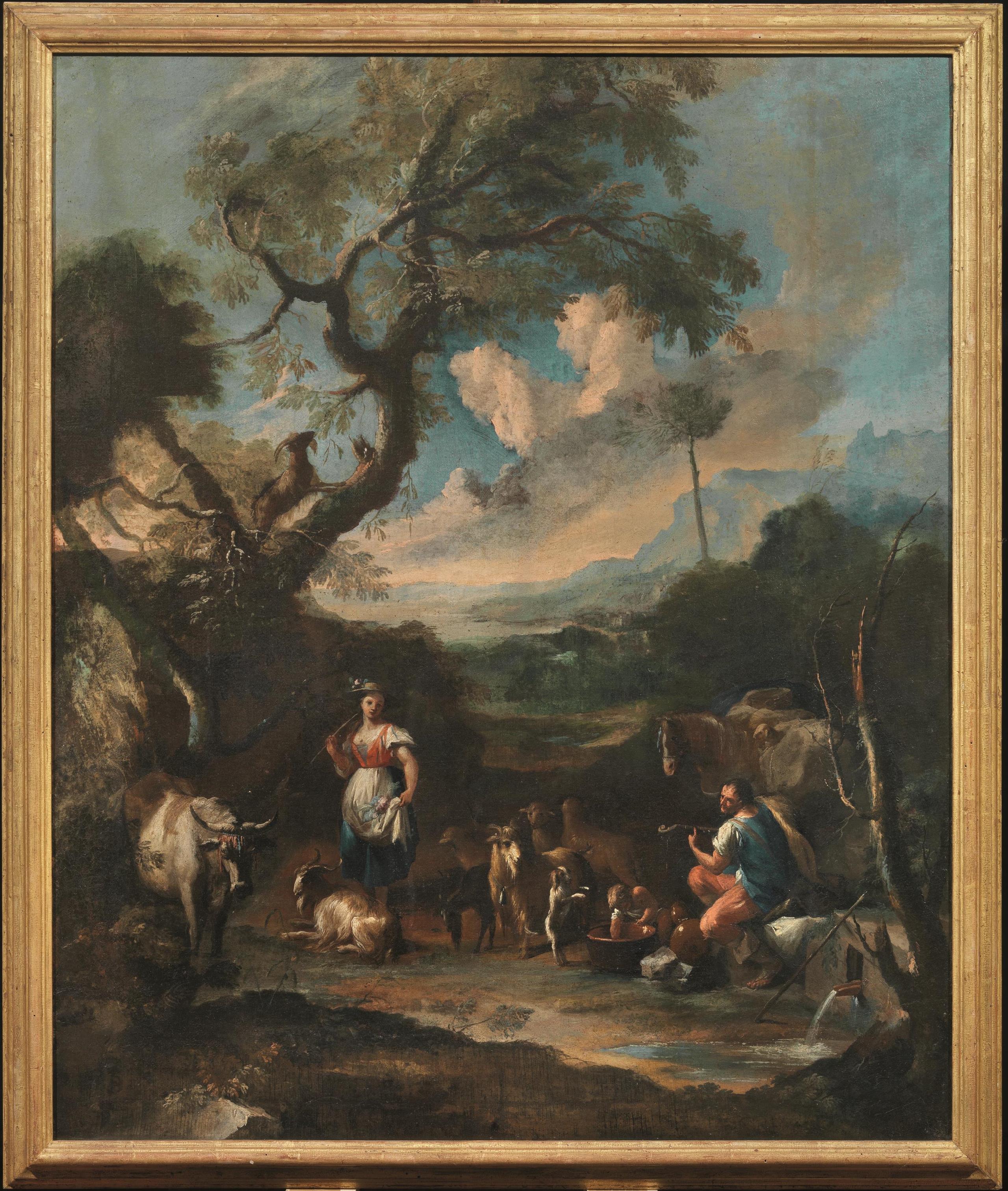 Il dipinto qui presentato raffigurante una scena pastorale con figure in primo piano dalla pennellata ricca e vibrante mostra tangenze con la cultura veneta di matrice riccesca, in particolare si evidenziano affinità stilistiche con le opere di Bartolomeo Pedon (Venezia 1665-1732).