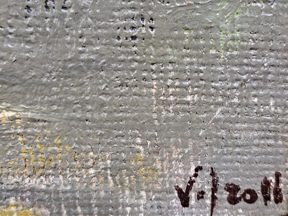 osservazioni: opera a tergo recante vecchio cartiglio espositivo e timbro galleria La Barcaccia