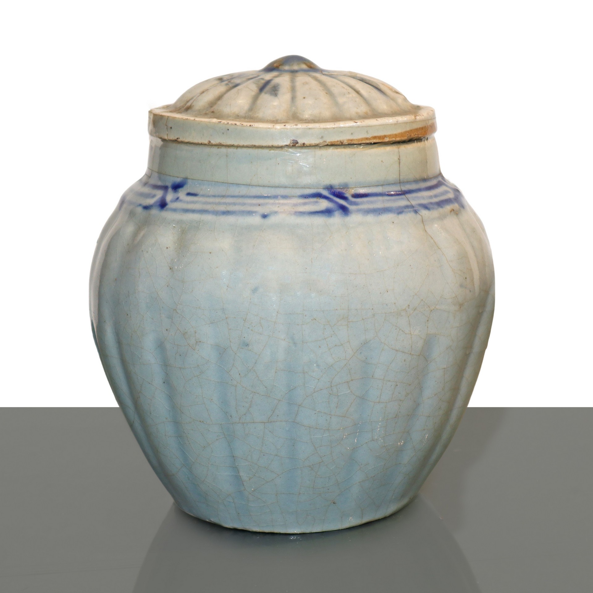 Vaso in ceramica policromo con i toni del blu, dinastia Qing