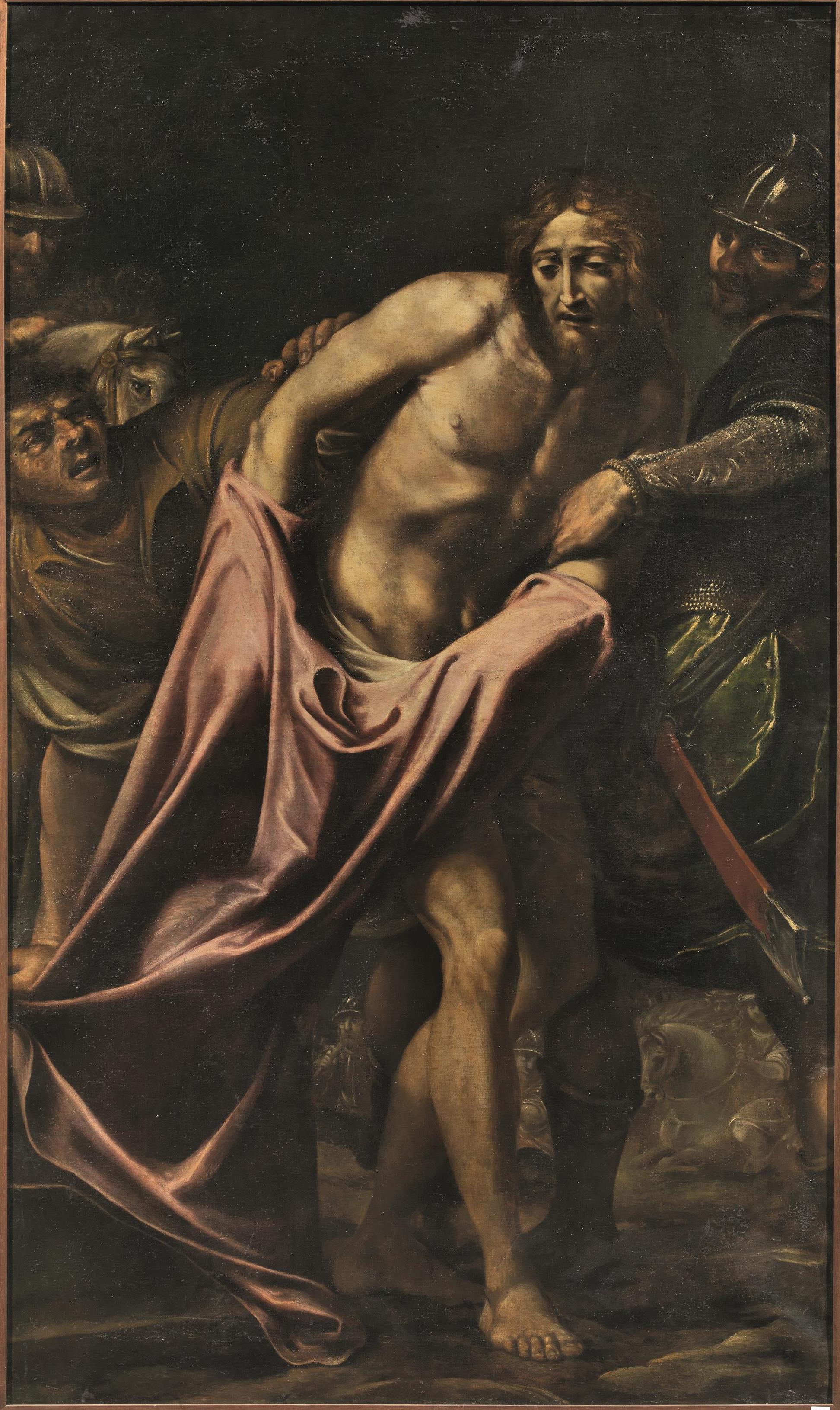 Come riferito oralmente da Carlo Del Bravo, cui si deve l’attribuzione, il presente dipinto era un tempo in serie con un Cristo alla colonna siglato, comparso sul mercato antiquario negli anni Settanta, che della tela qui offerta costituiva per l’appunto l’immediata prosecuzione sotto il profilo narrativo. Il nostro dipinto mostra infatti un episodio raramente, o forse mai proposto in queste dimensioni dalla pittura seicentesca, Gesù Cristo spogliato in vista appunto della sua flagellazione: e una scelta così inconsueta e specifica rafforza senz’altro l’ipotesi di appartenenza a un ciclo dedicato alla Passione, quasi si trattasse della versione ingrandita della serie dei Misteri Dolorosi.