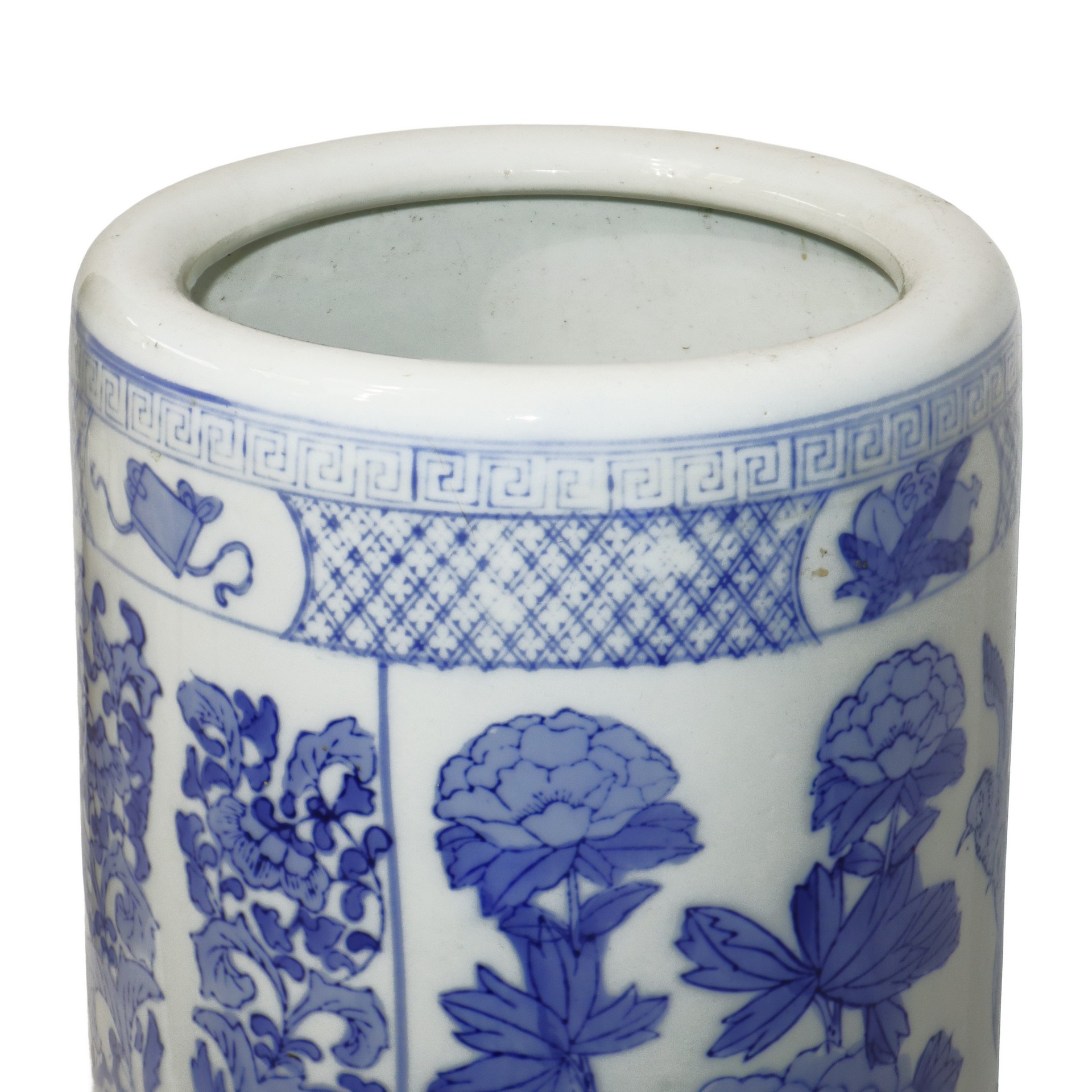 Vaso cinese a cilindro nei toni del blu su bianco