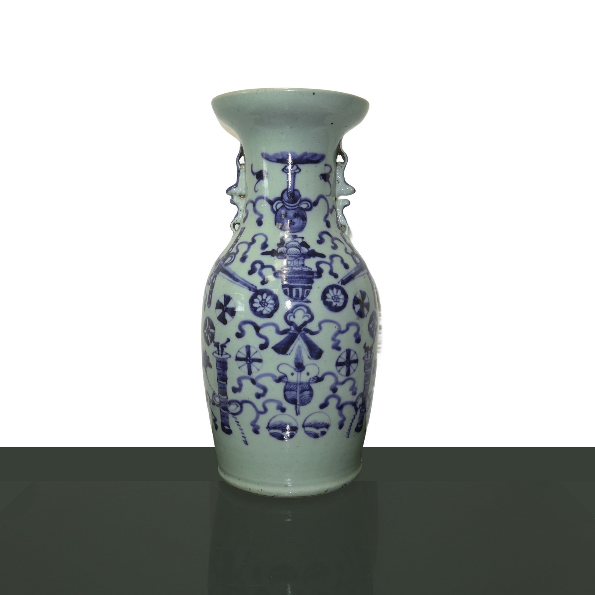 Lotto 113 | Vaso cinese in porcellana celadon a decori blu su fondo bianco