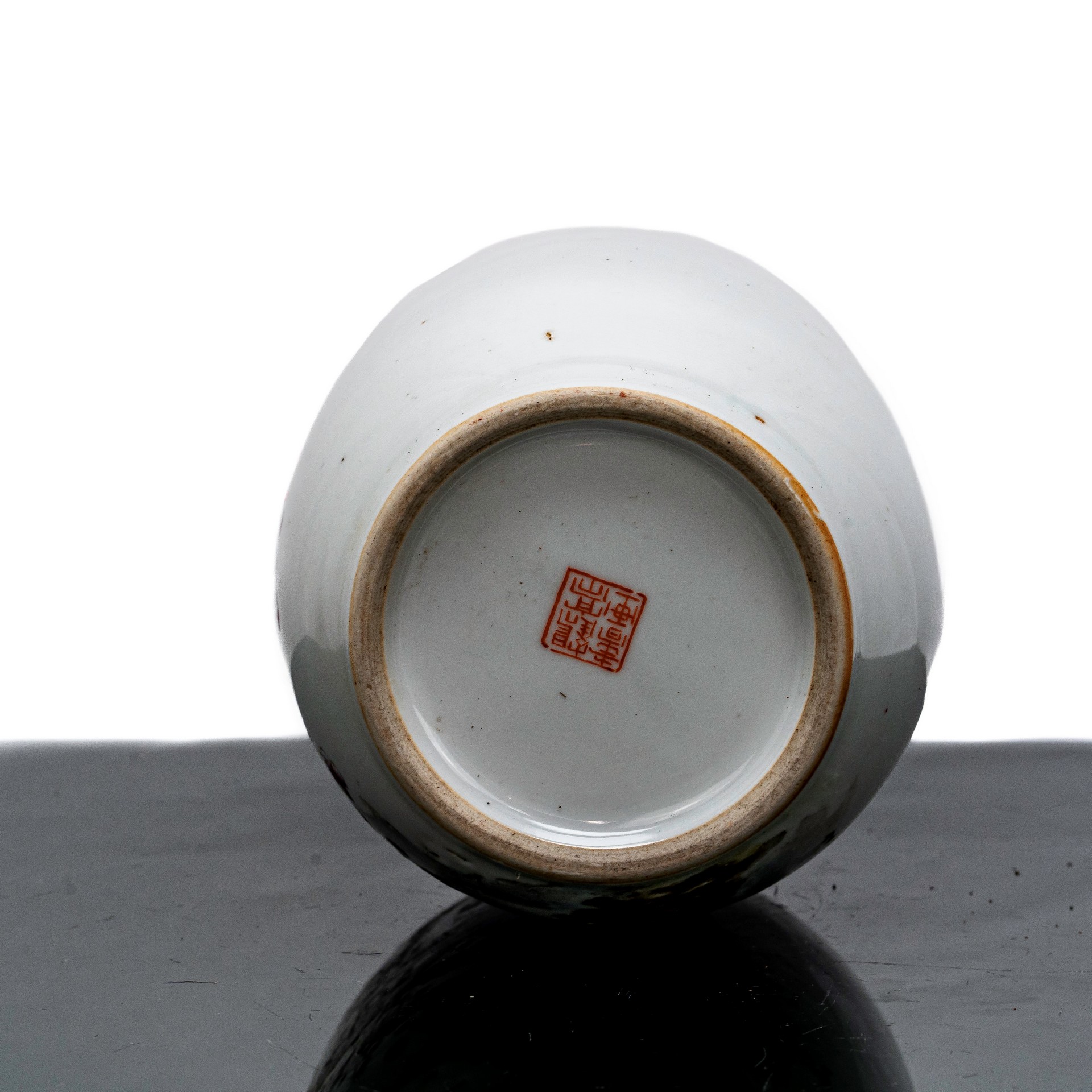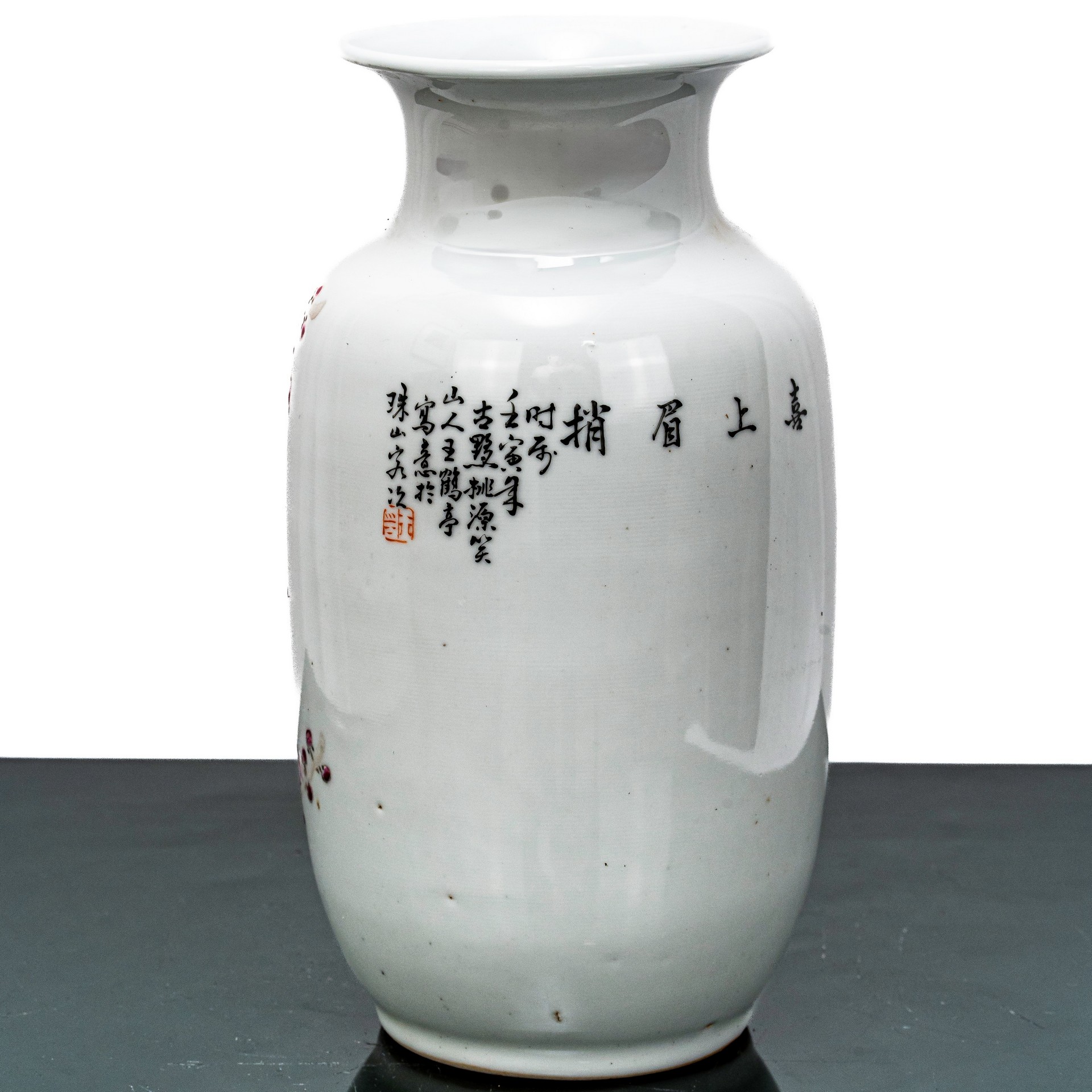 Vaso cinese dipinto sul fronte con fiori di pesco e uccello, 19th/20° secolo h cm 25,5 Iscrizione alla base