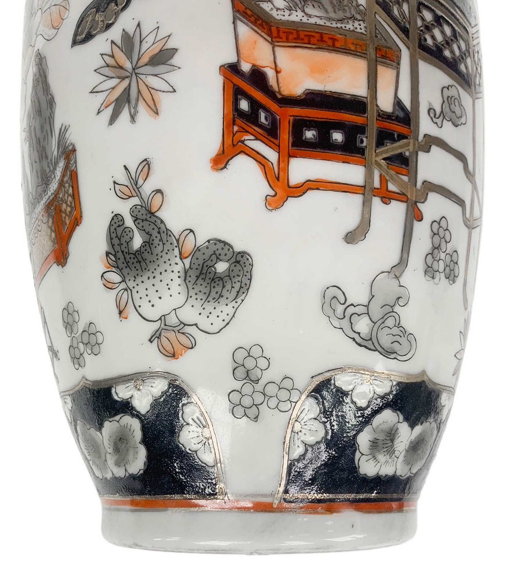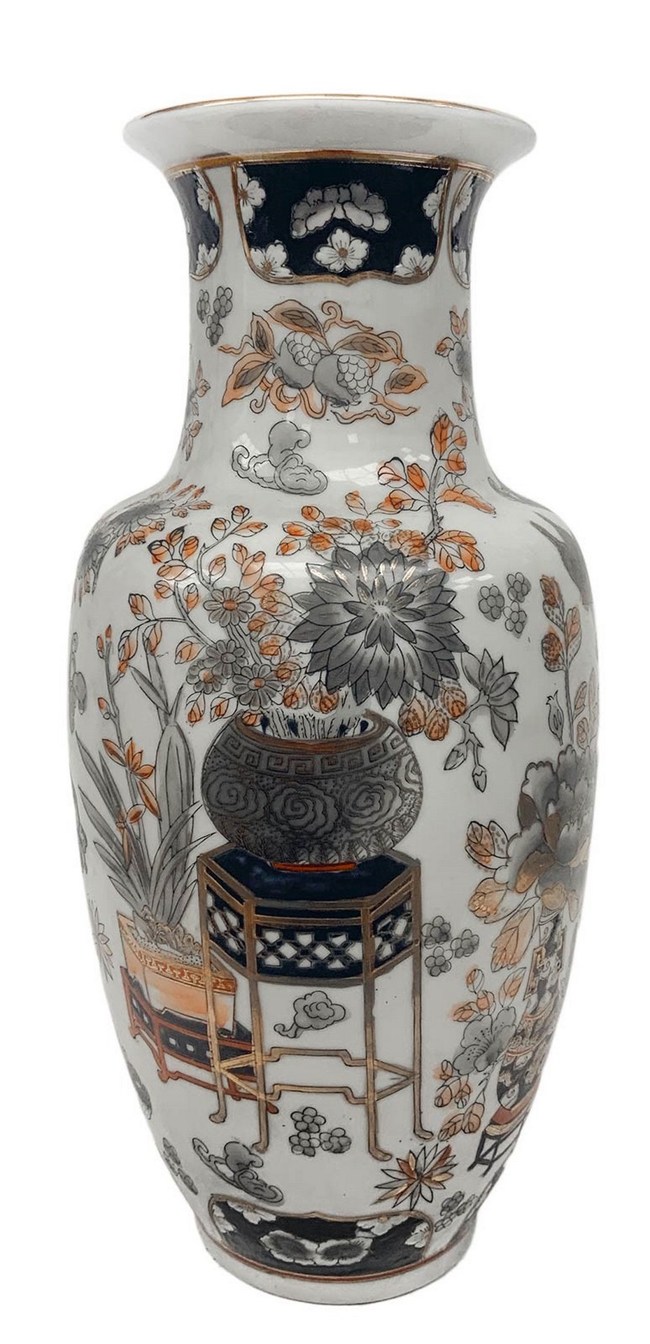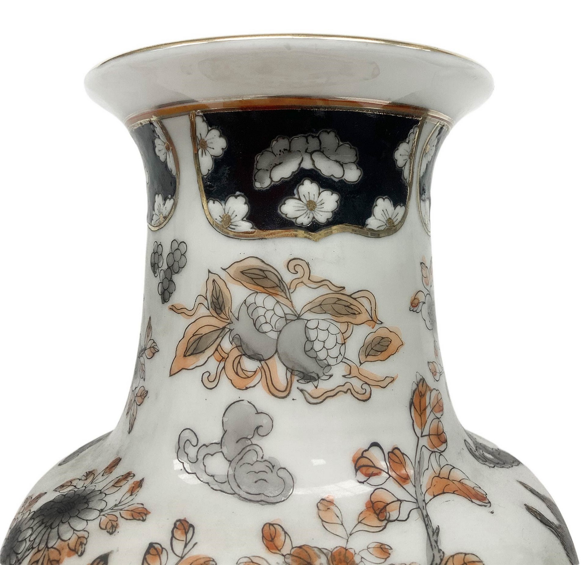 Vaso in porcellana cinese decori floreali su sfondo bianco Cm 41