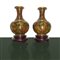 Coppia di vasi cloisonnet nei toni del marrone con base in legno
