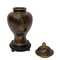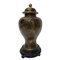 Potiche cinese cloisonnet in ceramica marrone con decori dorati floreali, interno turchese H cm 20,5x10 Con base in legno