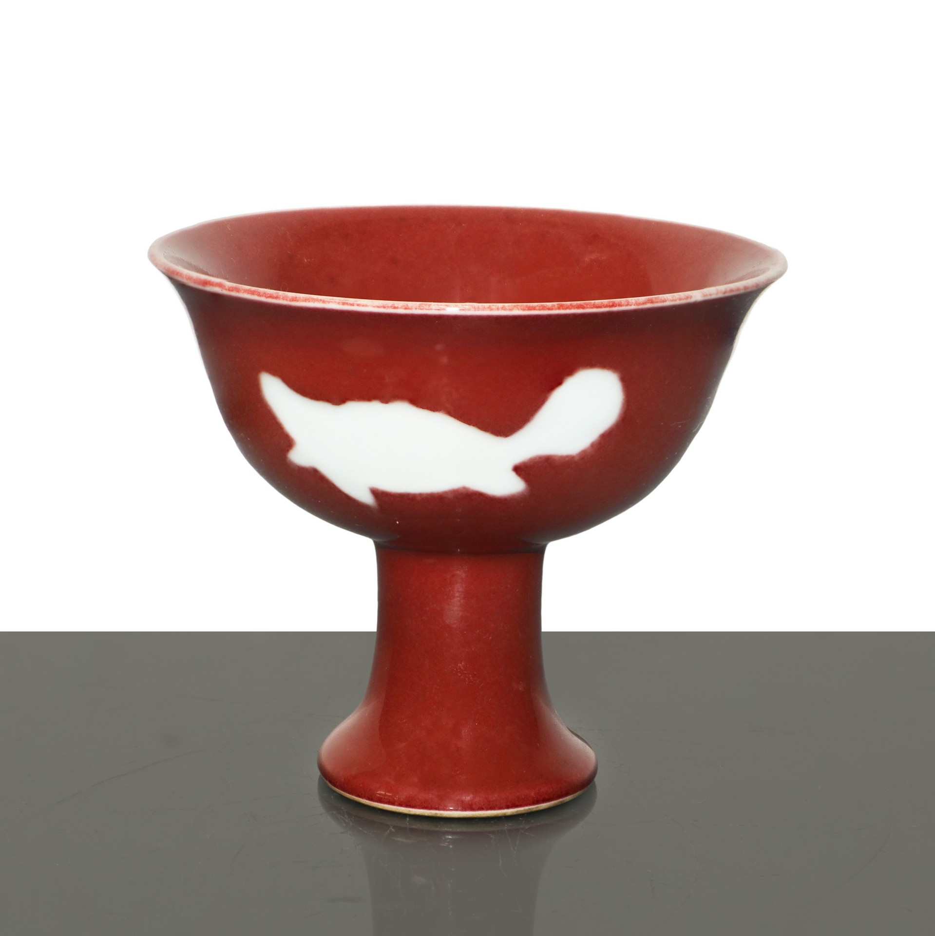 Piccola coppa cinese smaltata in rosso con decori bianchi, Ming Dynasty
