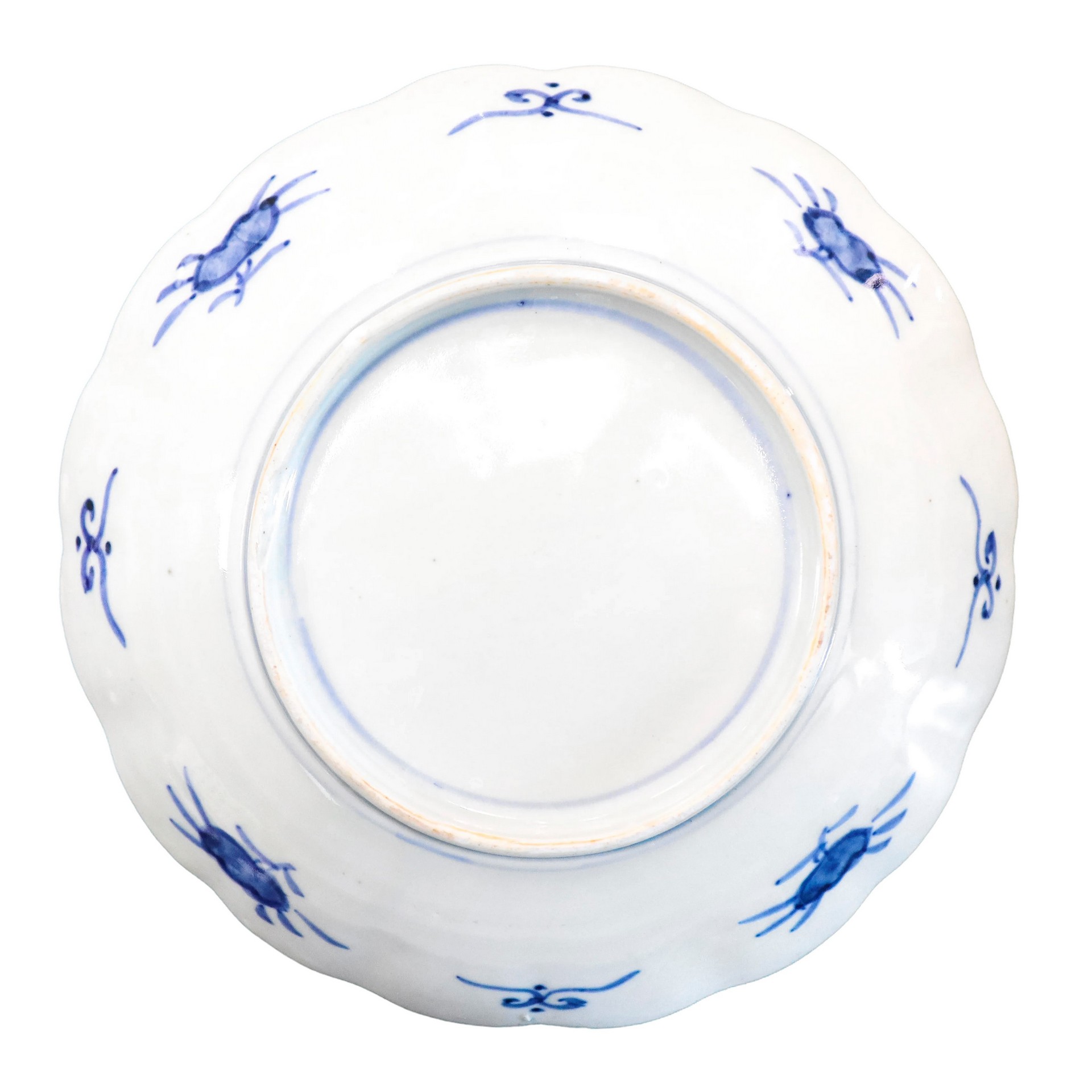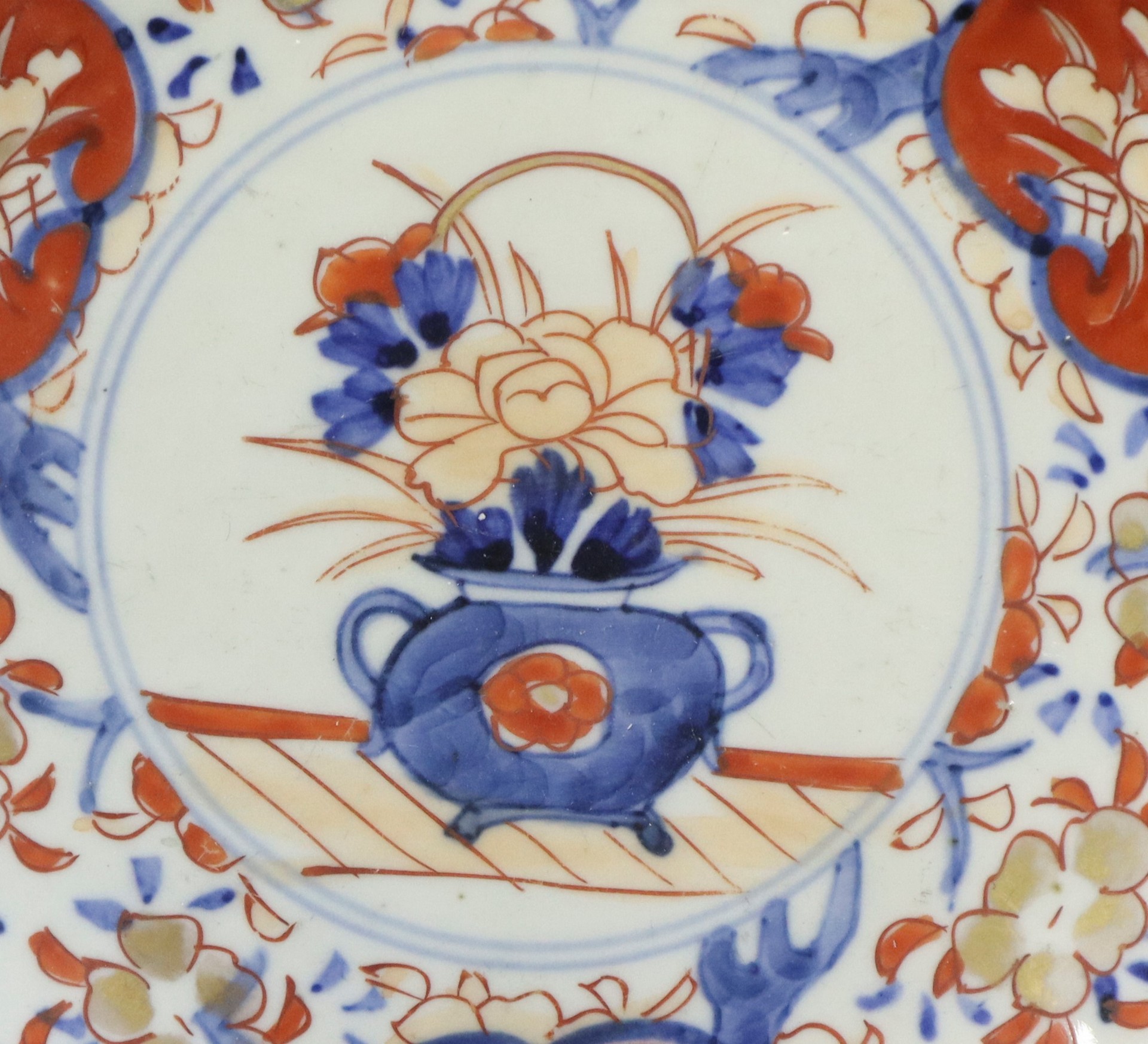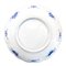 Piatto decorativo d cm 21.5 Con raffigurazioni floreali nei toni dell'arancione e del blu su fondo bianco, sul retro dipinto ai bordi; minima sbeccatura al bordo.