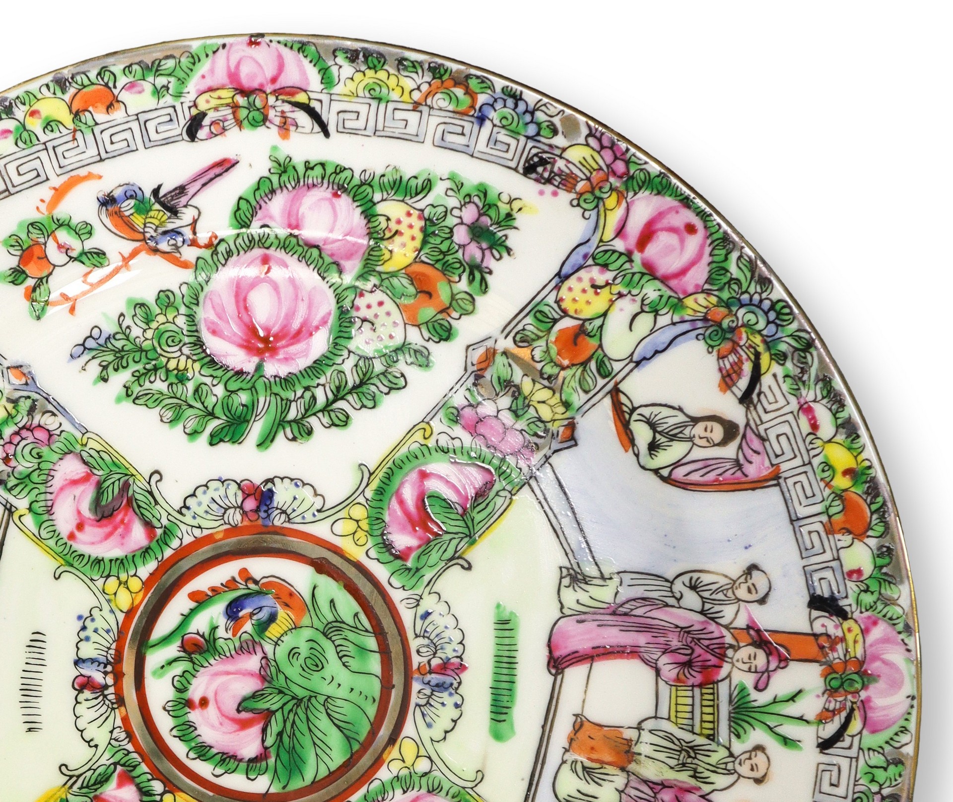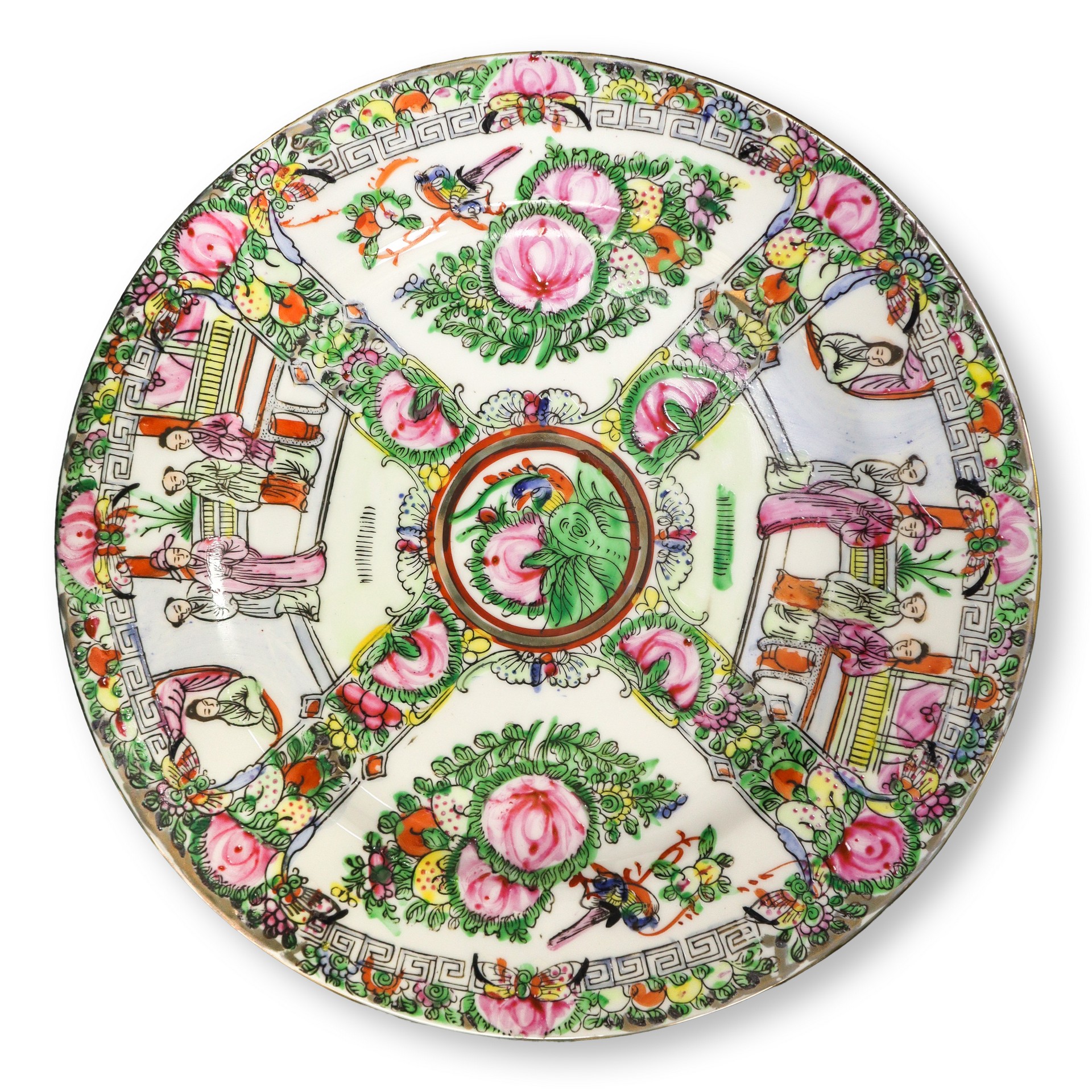 Piatto cinese dipinto policromo con scene di vita diametro cm 26