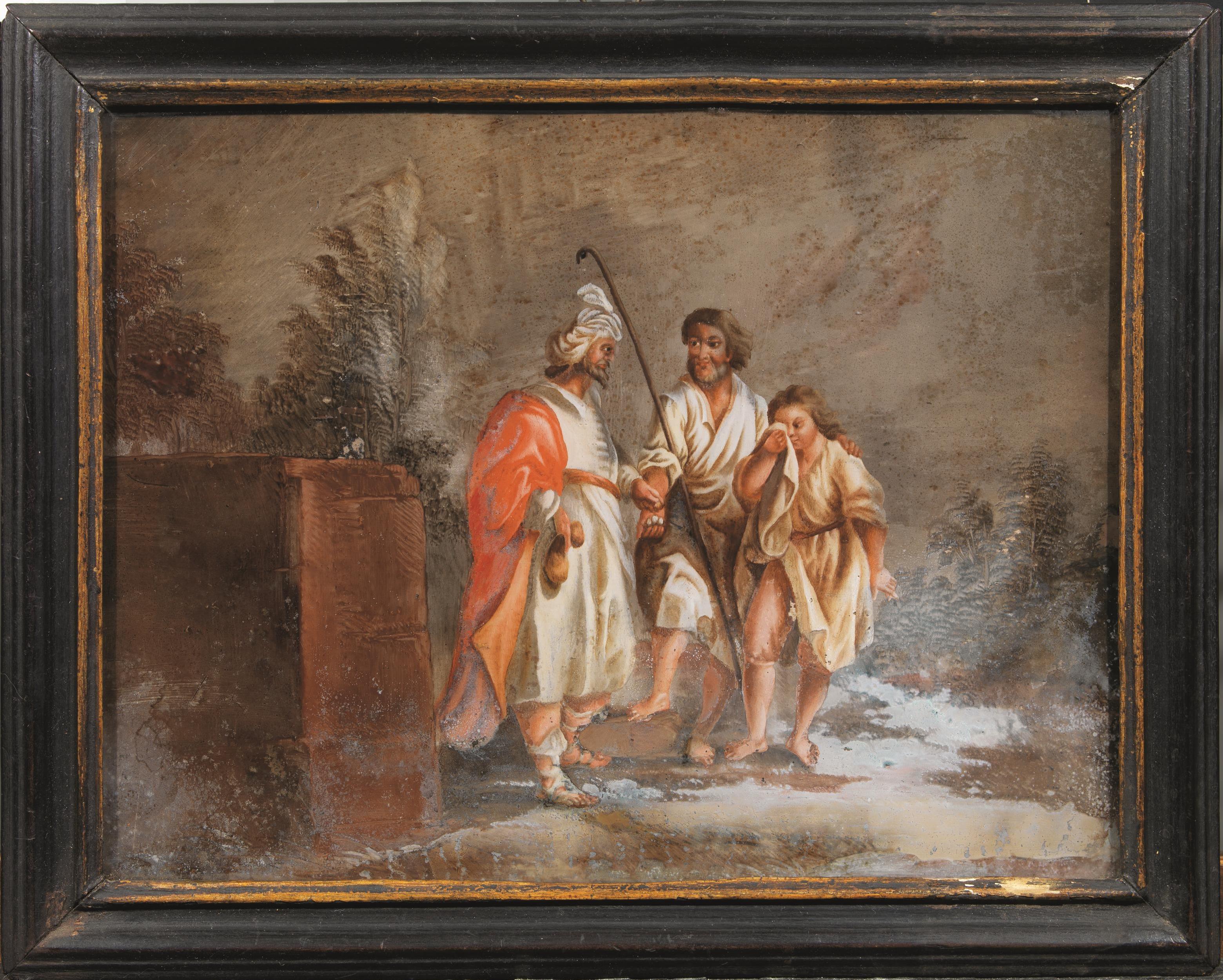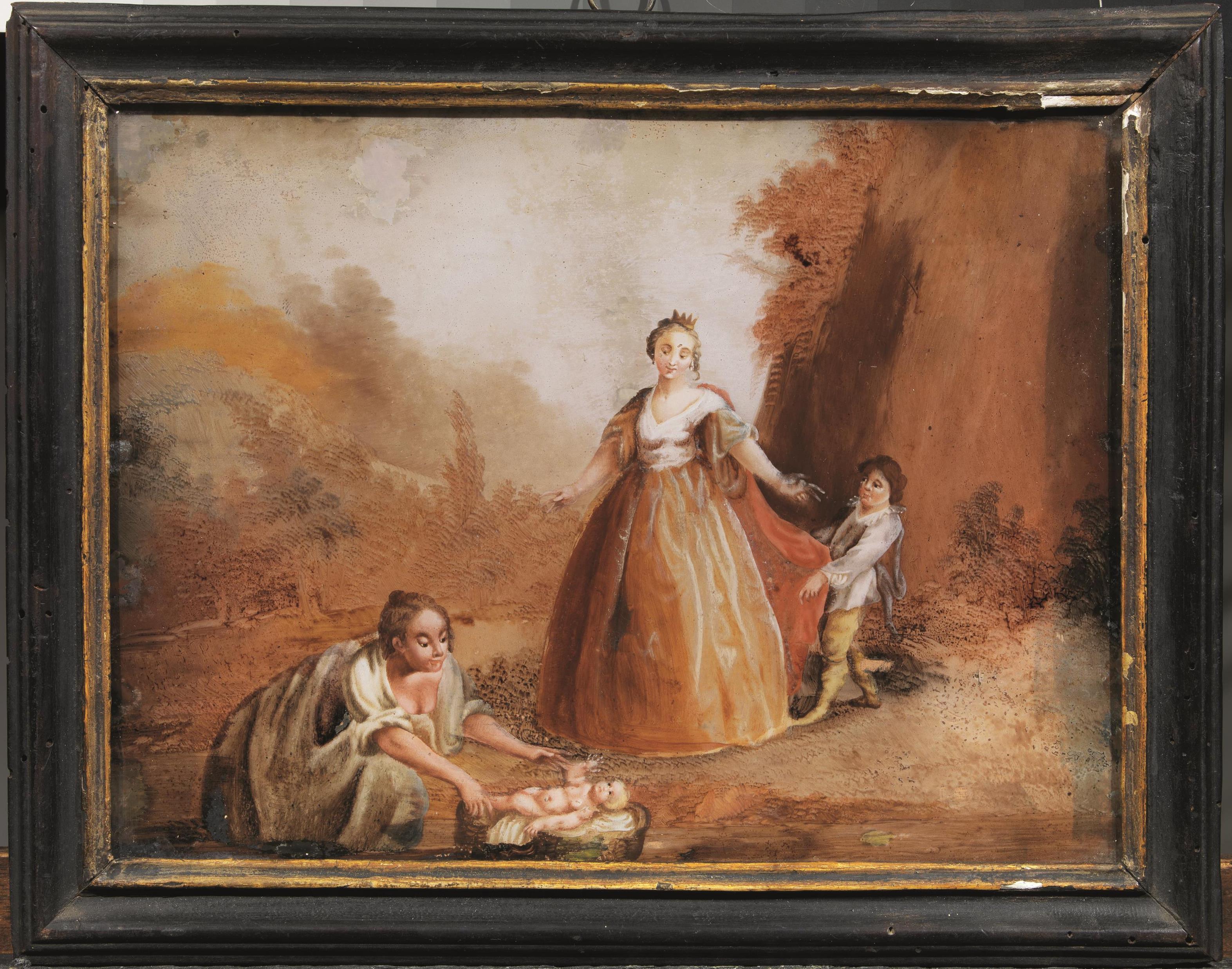 coppia di dipinti ad olio su vetro, cm 20x25 ciascuno