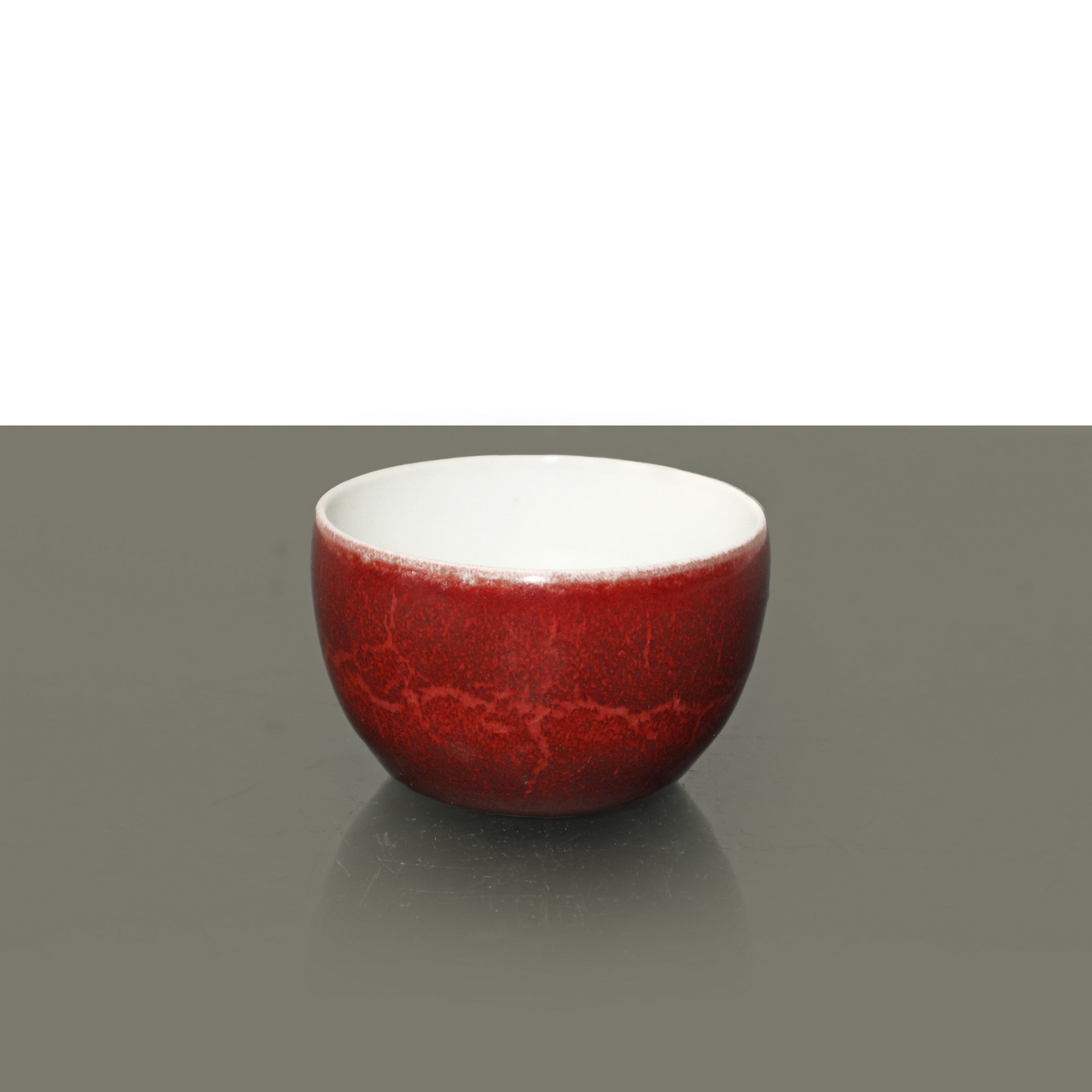 Tazzina rossa in porcellana cinese, Qing Dynasty 17° secolo h 4,2cm diam. 6,5cm Iscrizione sul fondo.