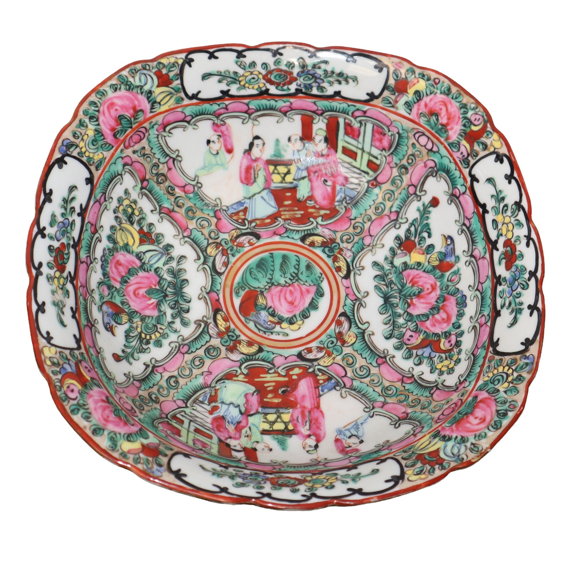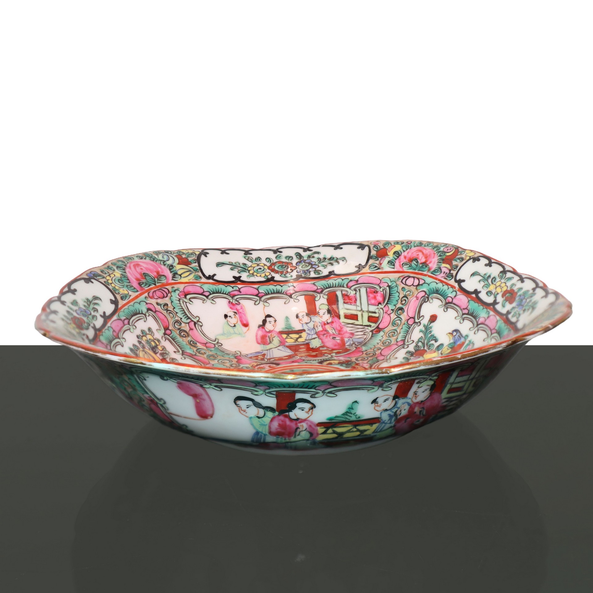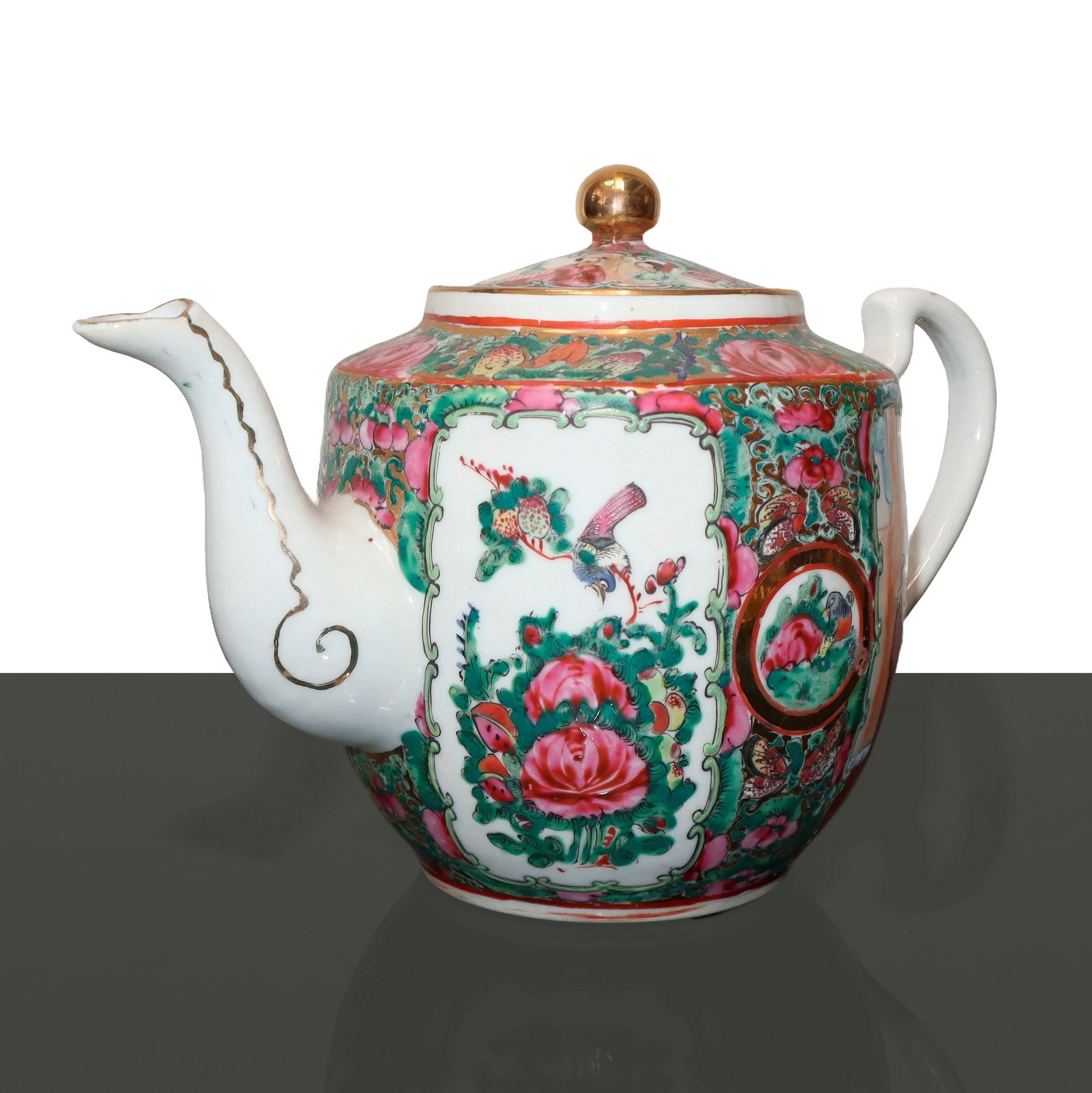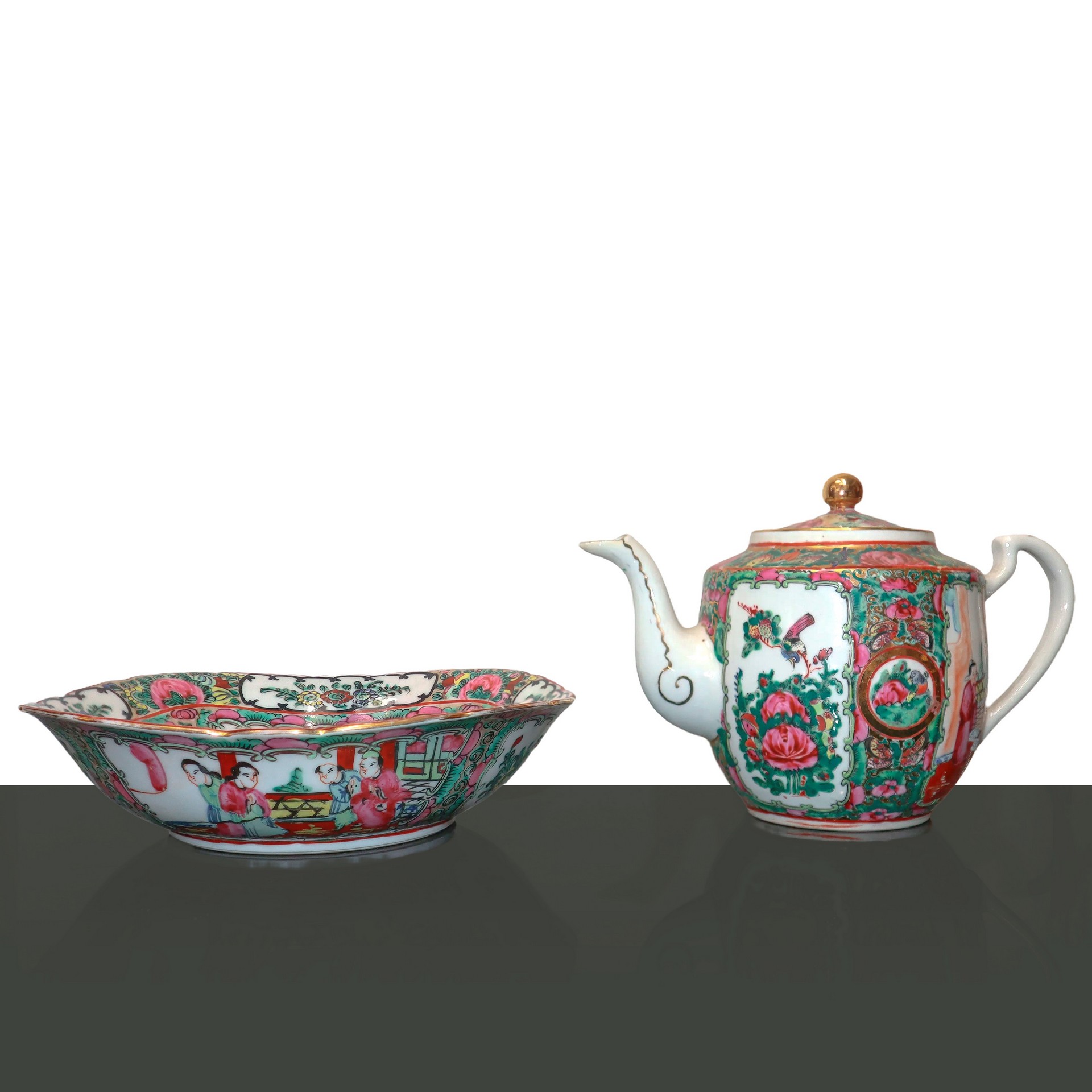Ciotola e teiera cinesi, 20° secolo H cm 5 x 22 / h cm 13 Dipinti a mano con scene di genere e floreali.