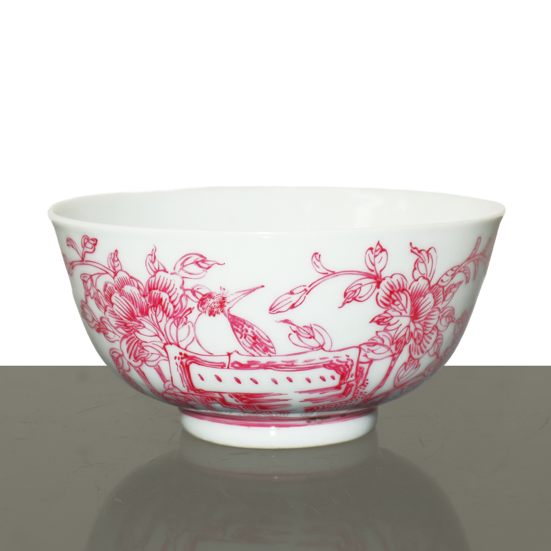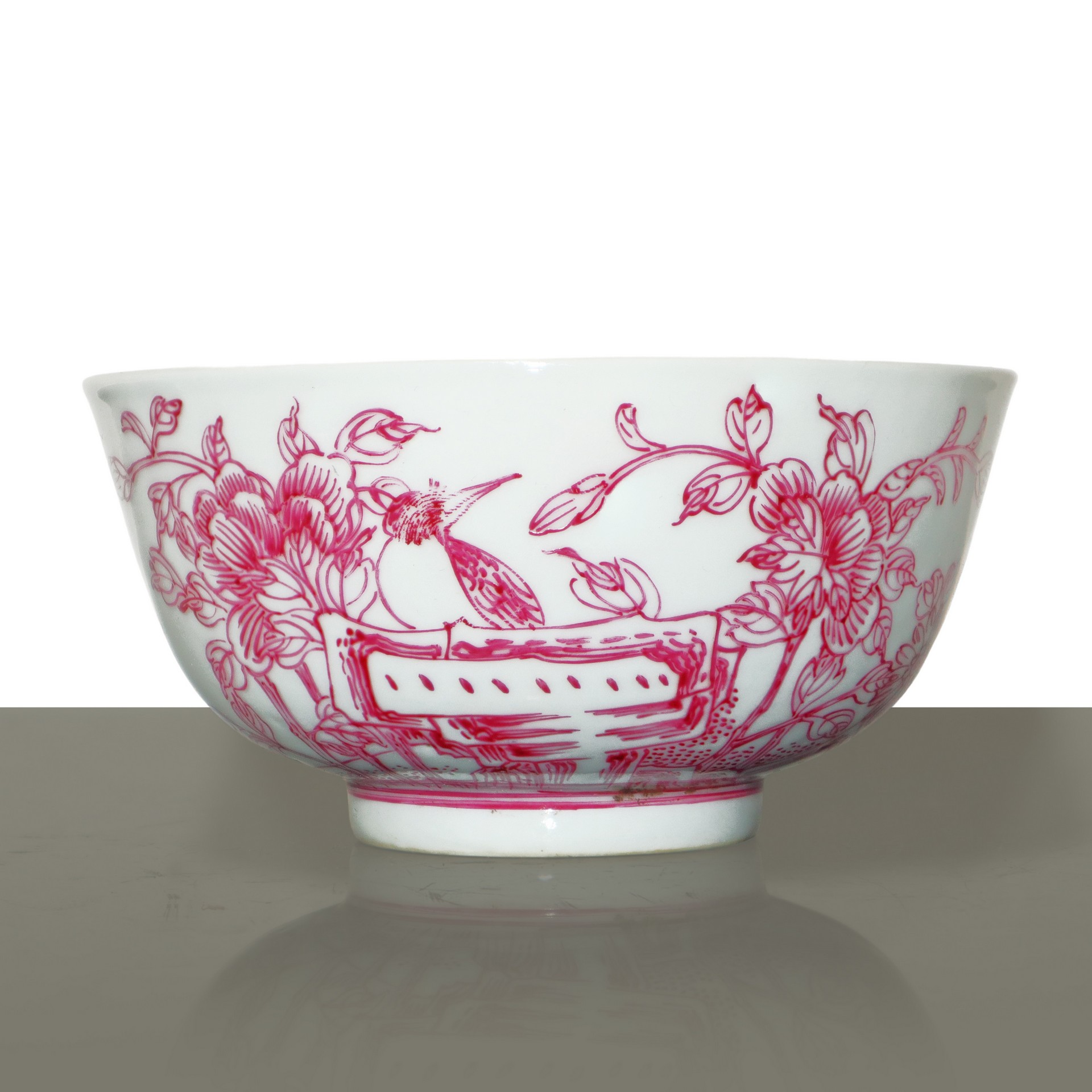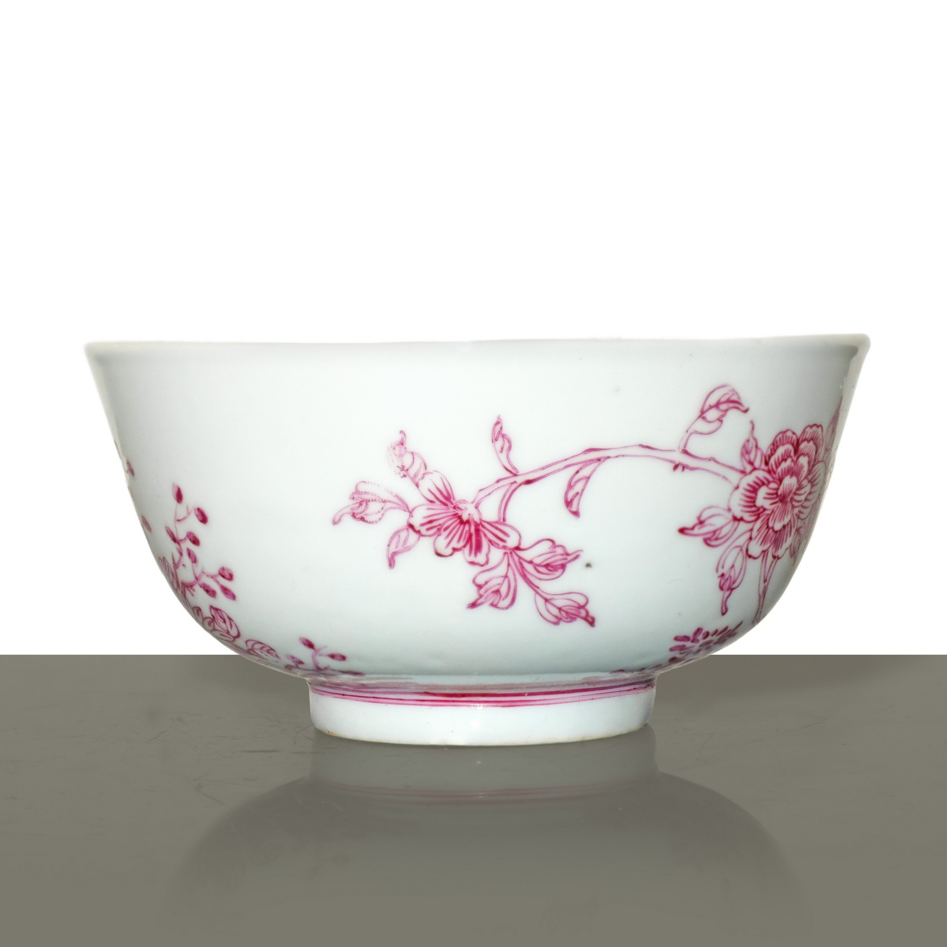 Ciotola in porcellana cinese con decorazioni floreali color magenta, Qing Dynasty 19° secolo
