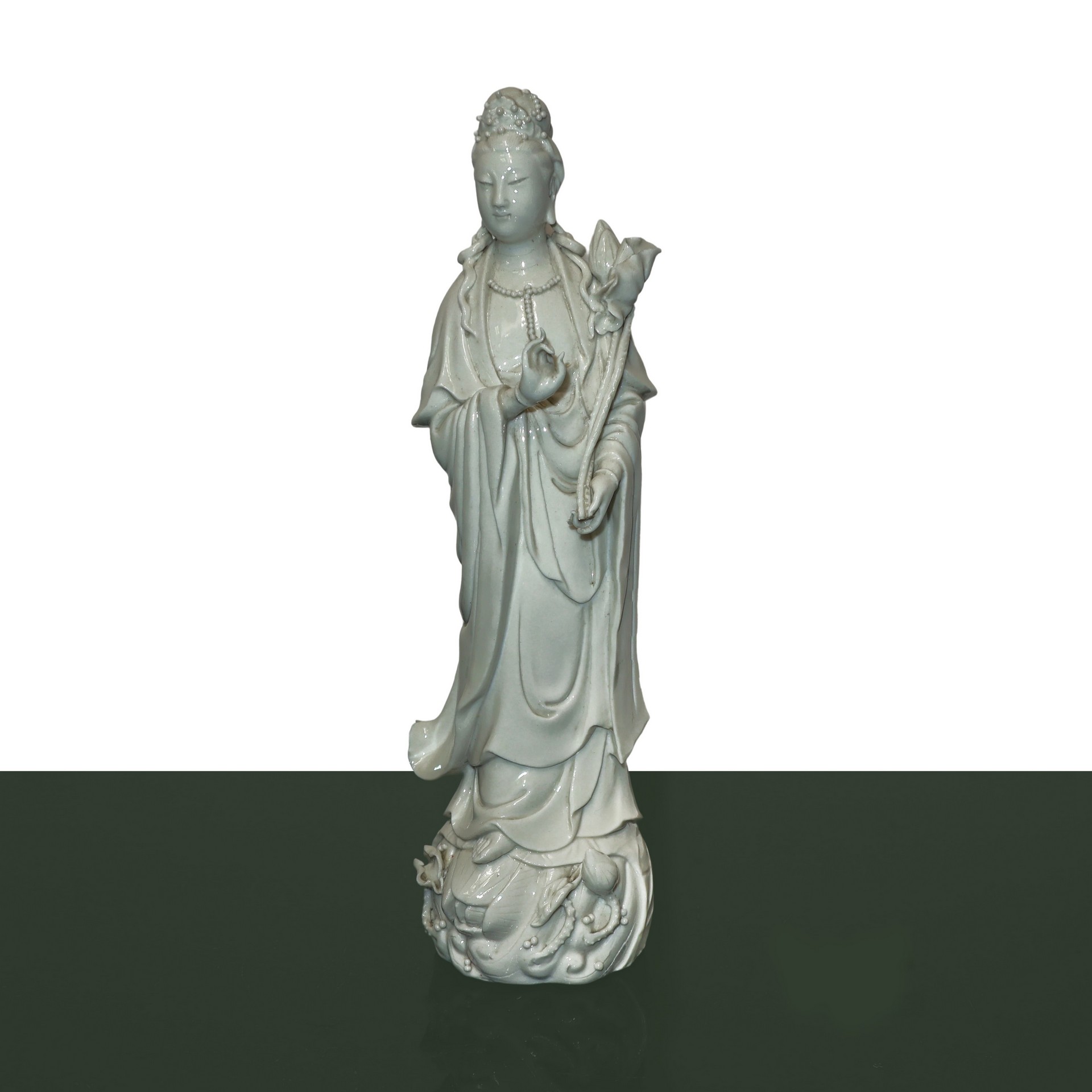 Lotto 244 | Coppia di guanin blanc de chine con fiore di loto, Republic period