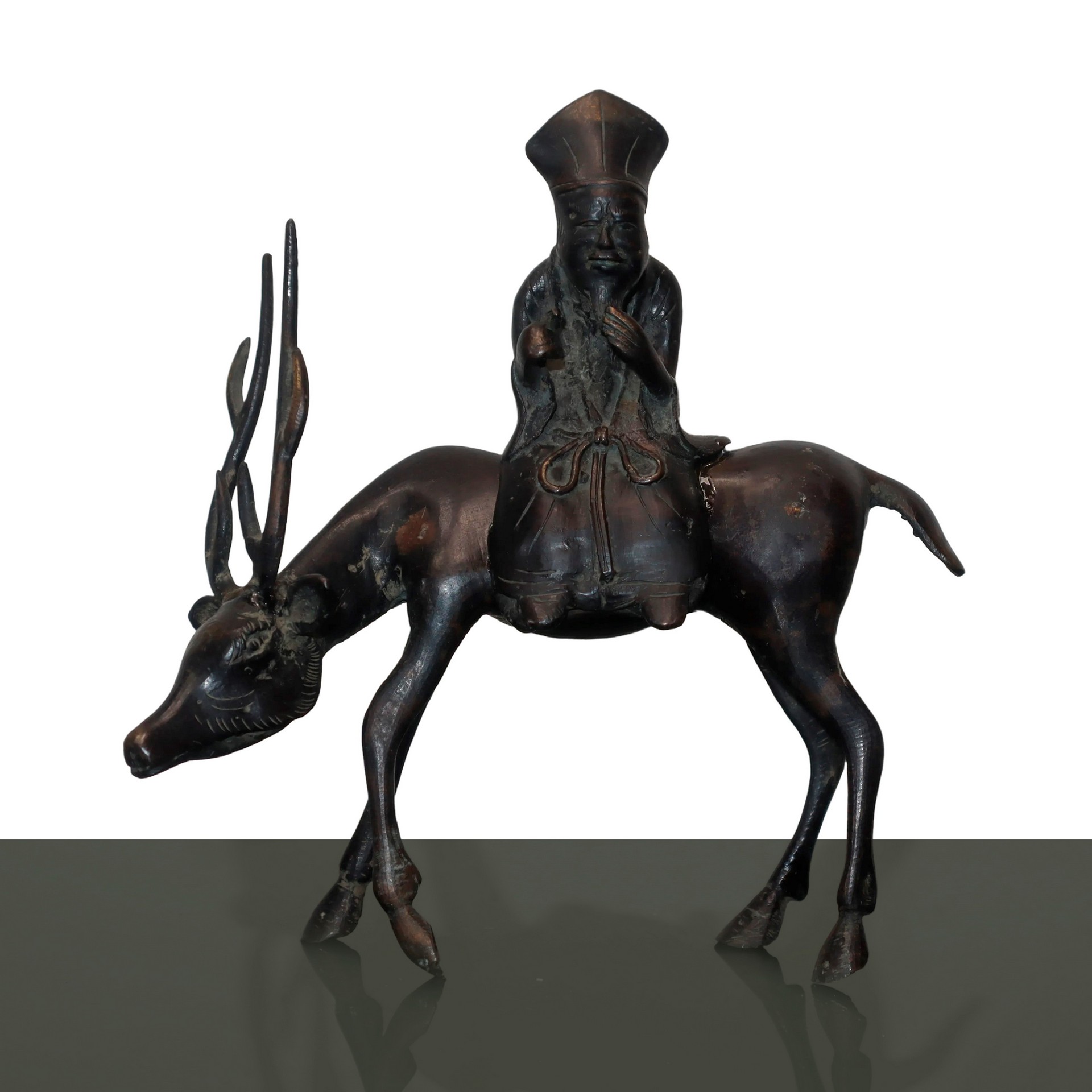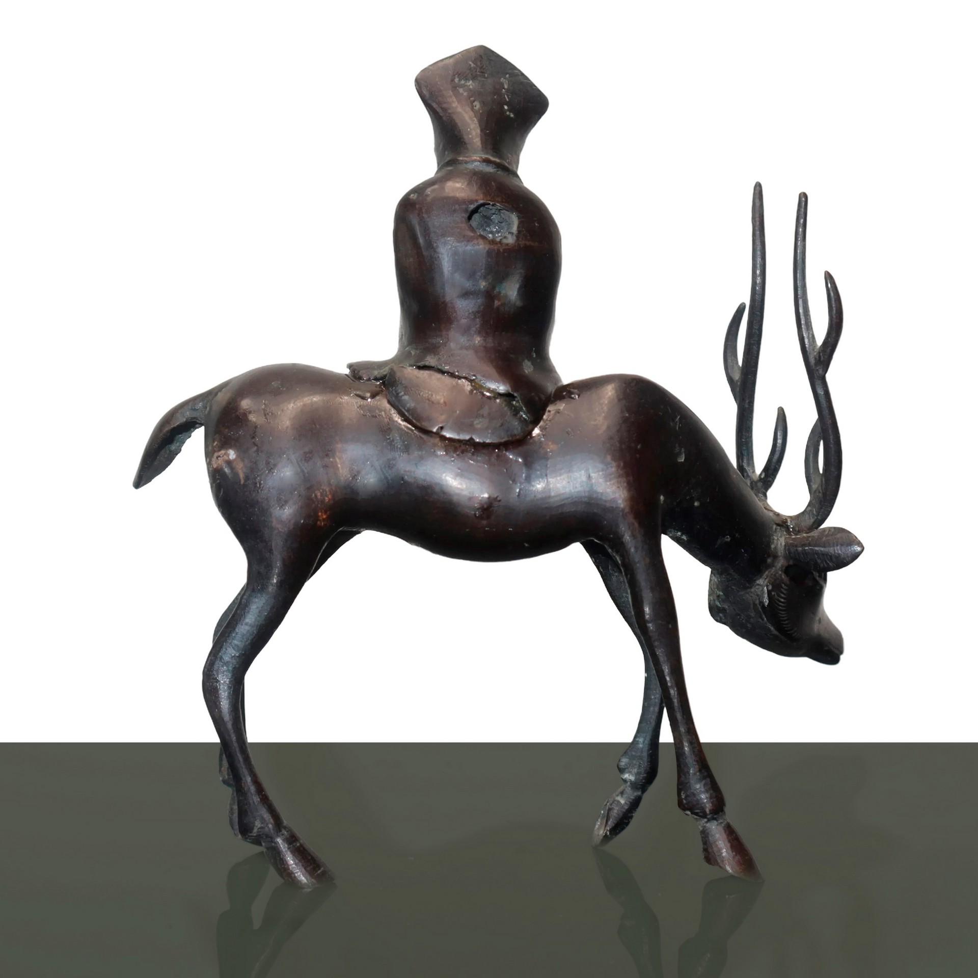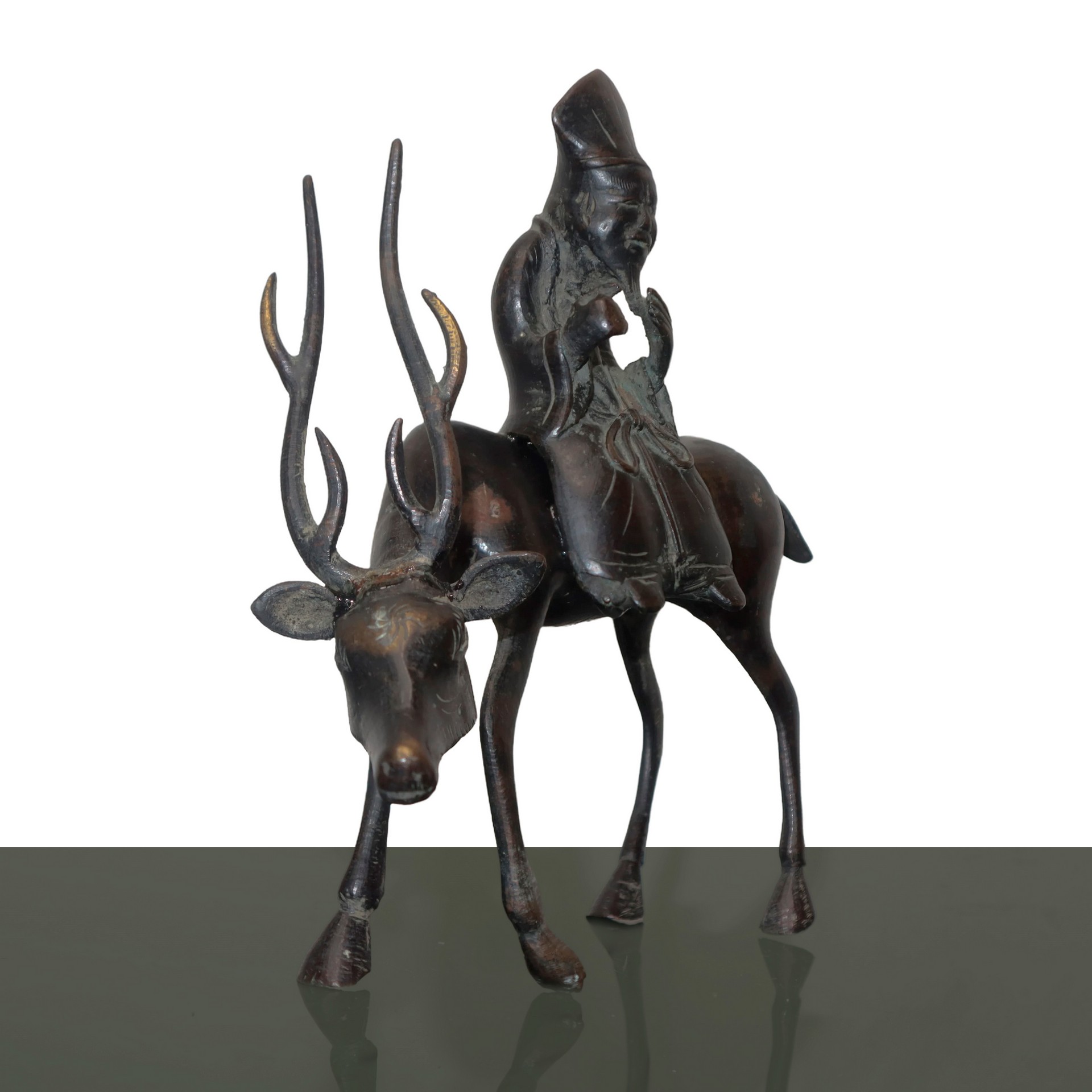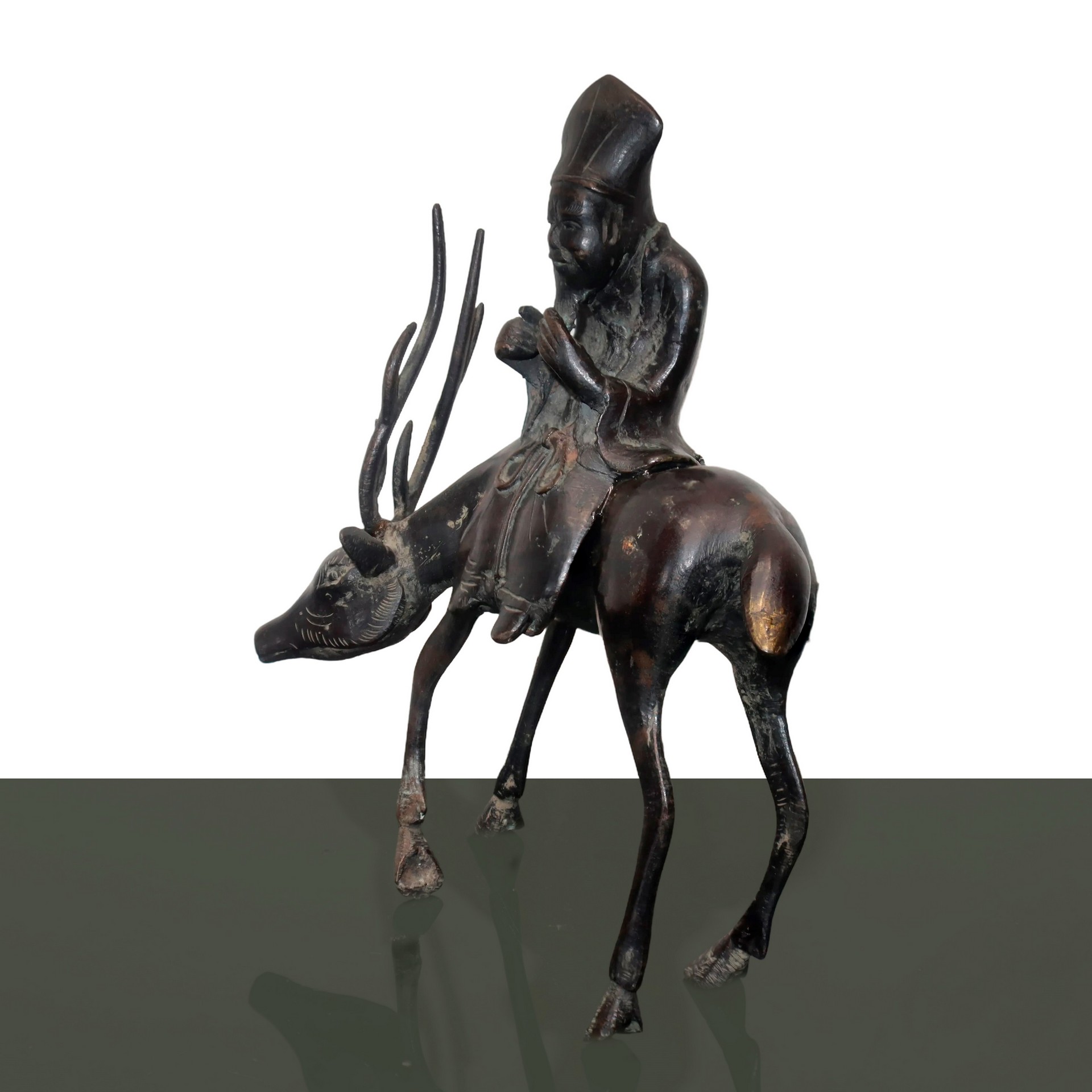 Anziano seduto su cervo, scultura in bronzo , Inizi 20° secolo