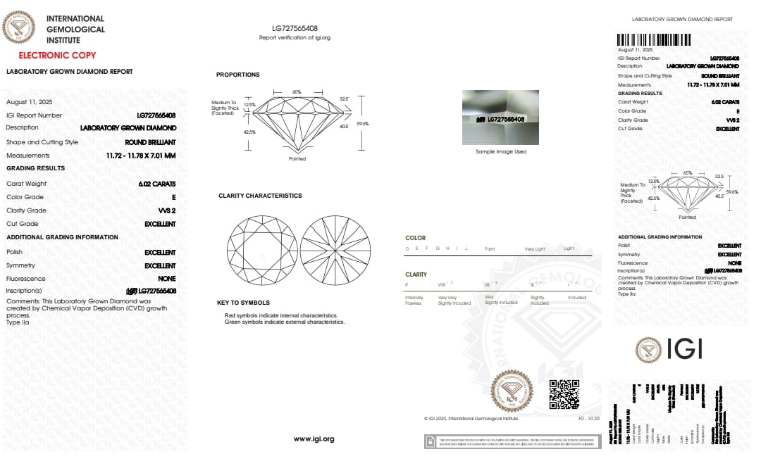 DIAMANTE LAB-GROWN 6,02 CT - E - VVS2 – IGI