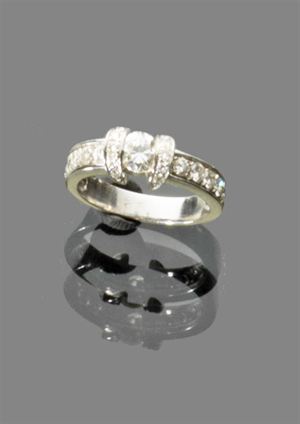ANELLO Anello oro bianco con diamante a taglio brillante centrale di ct. 0,50...