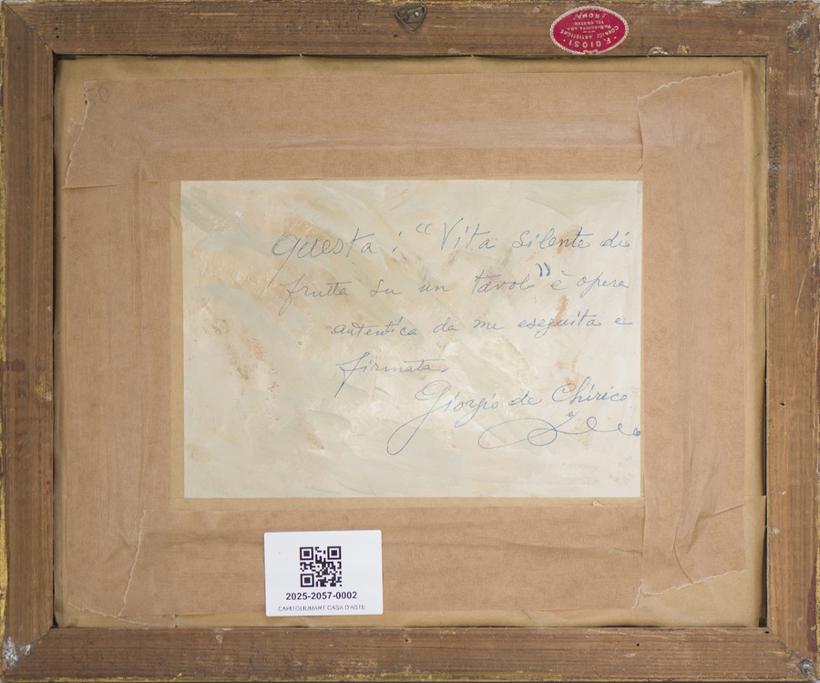 L'opera è accompagnata da certificato di archiviazione della Fondazione Giorgio e Isa De Chirico, Roma, a cura di Paolo Picozza.