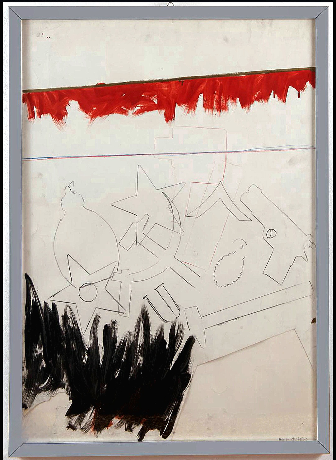 FRANCO ANGELI, 105 x 75,5 cm, Tecnica mista su carta, anno 1966, Archivio FRANCO ANGELI a cura di Maria Angeli Roma n. D-060522/307, Firma e data al centro “Angeli 66 ” e in basso a destra “ Franco Angeli”.