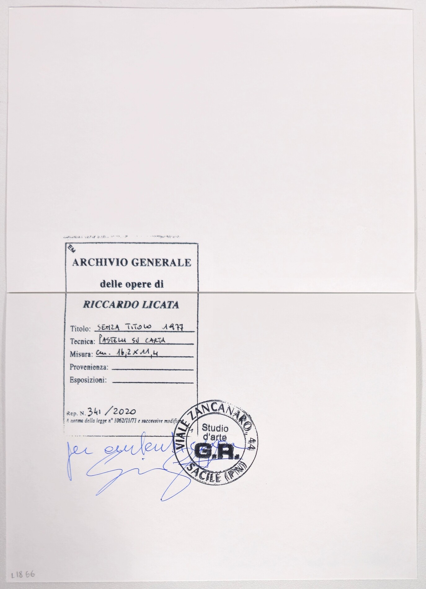 Opera accompagnata da Archivio Generale delle opere di Riccardo Licata