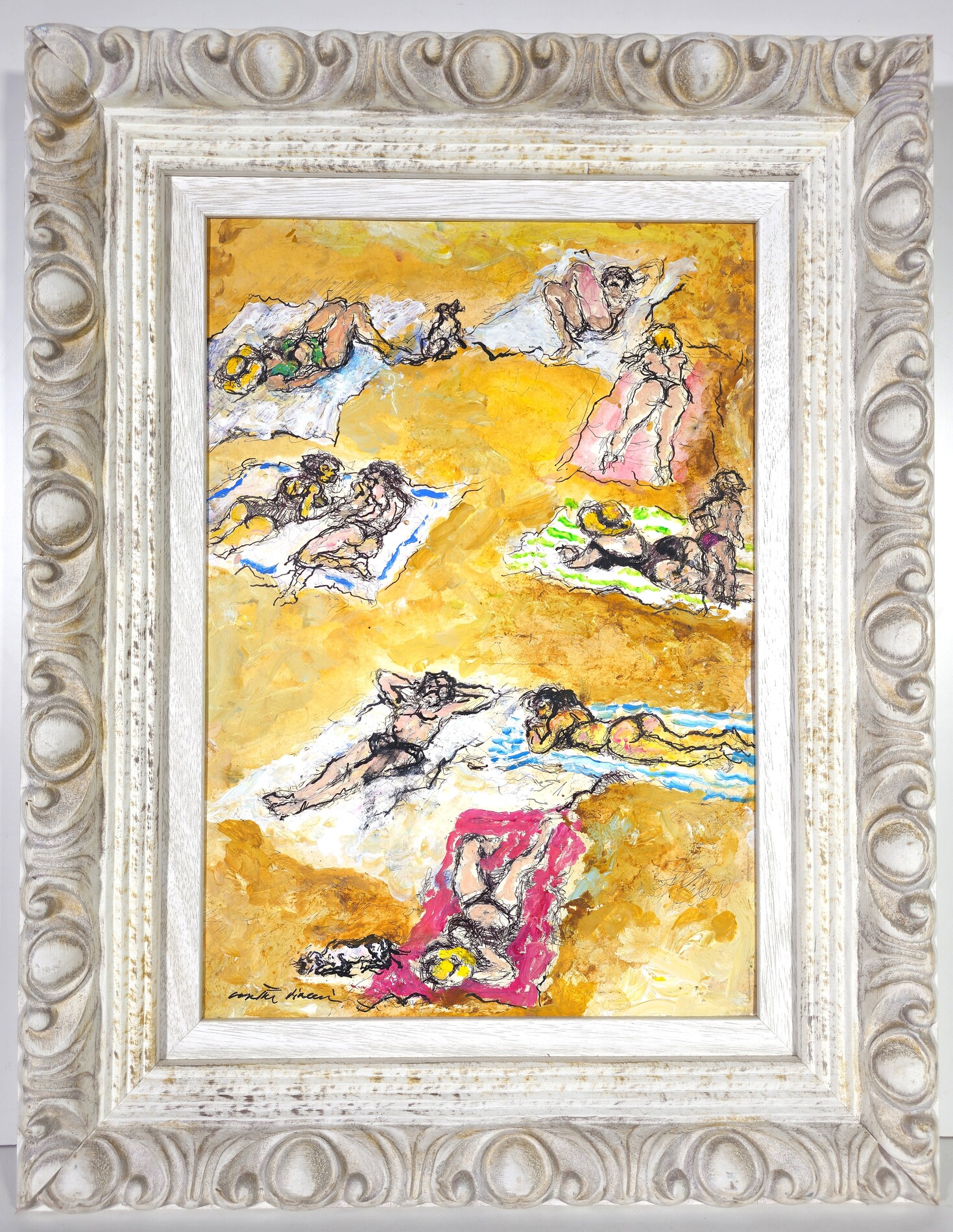 WALTER PIACESI, 50 X 35 cm, ”Tutti al Mare" Olio e tecnica mista su...