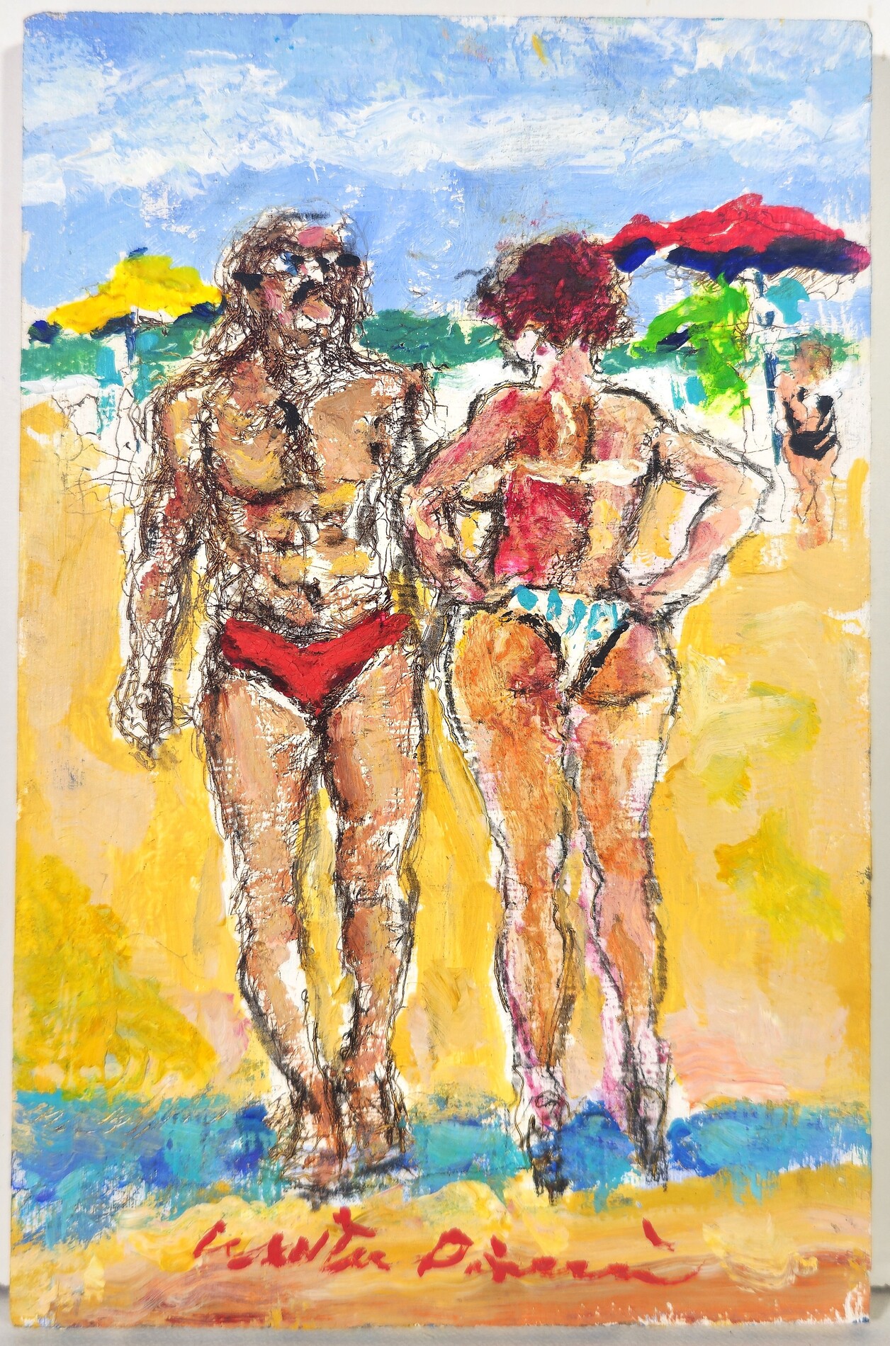 WALTER PIACESI, 20 X 13 cm, ”Bagnanti” olio su tavola. Anno 2013 Firma in...