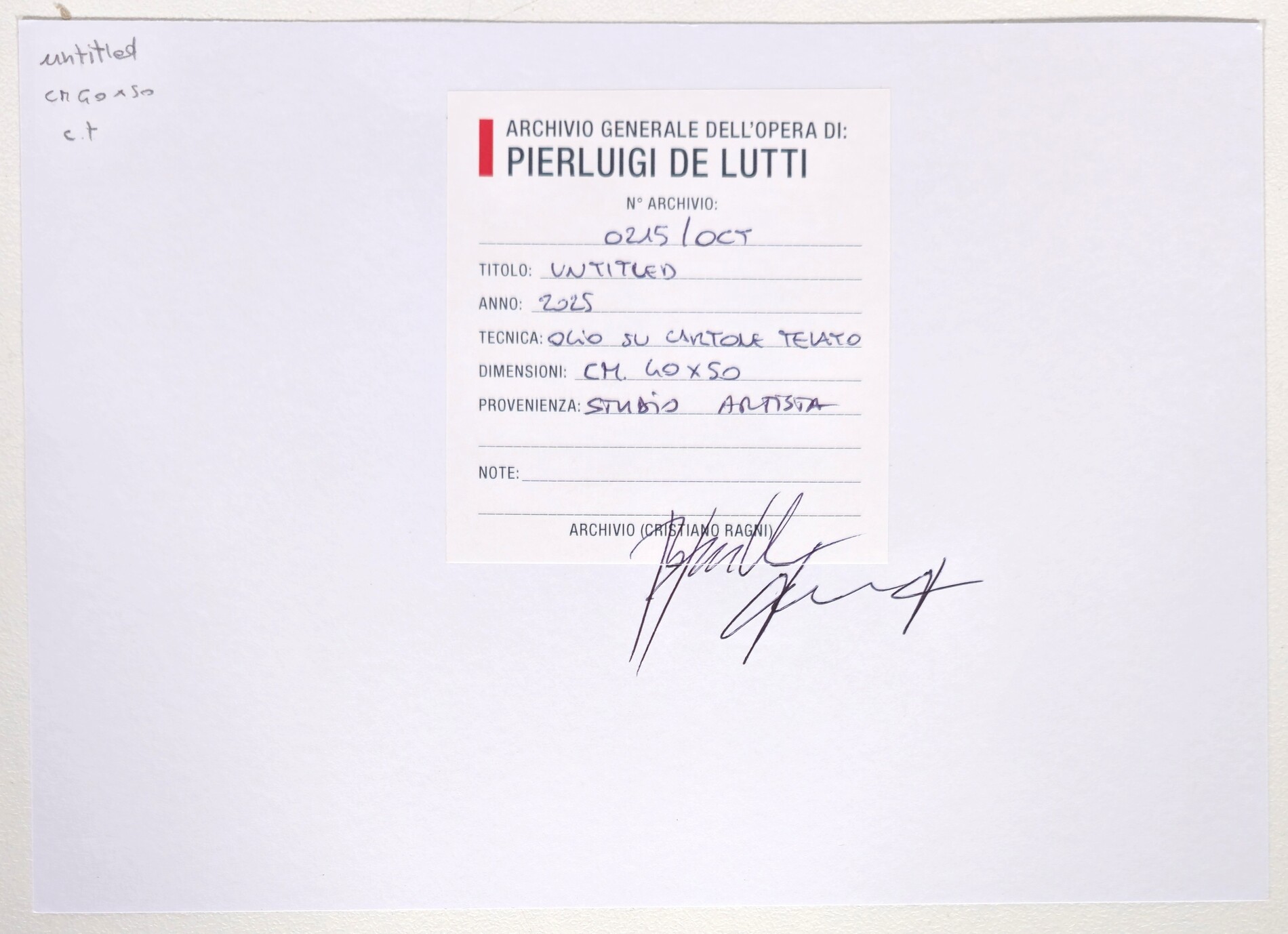 Opera registrata presso l'Archivio Generale dell'Opera di Pierluigi De Lutti al numero 0215/OCT