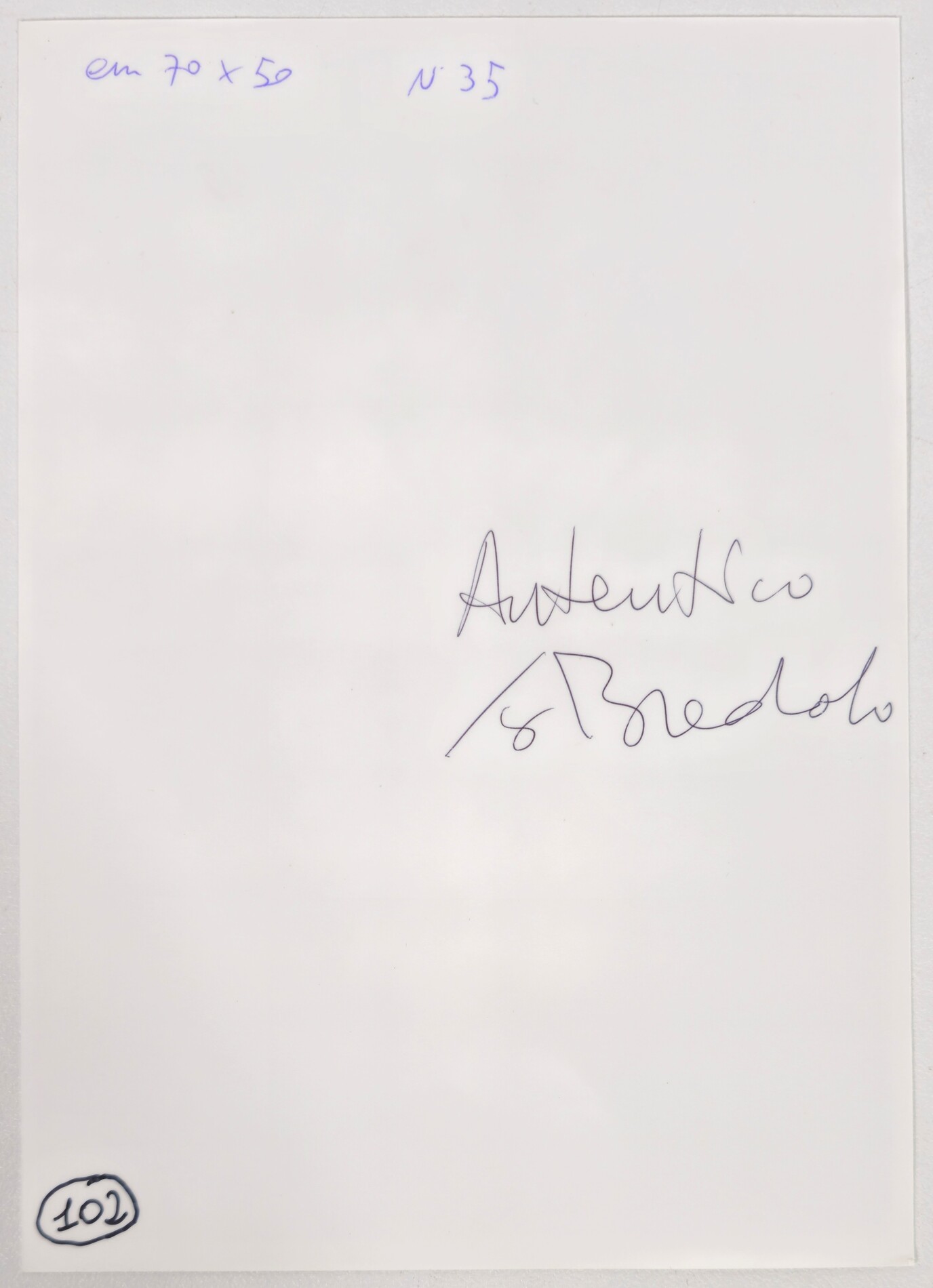 GASTONE BREDDO, 70 X 50 cm, Senza Titolo, olio su tela, firma in basso a destra, Autentica dell'artista su fotografia