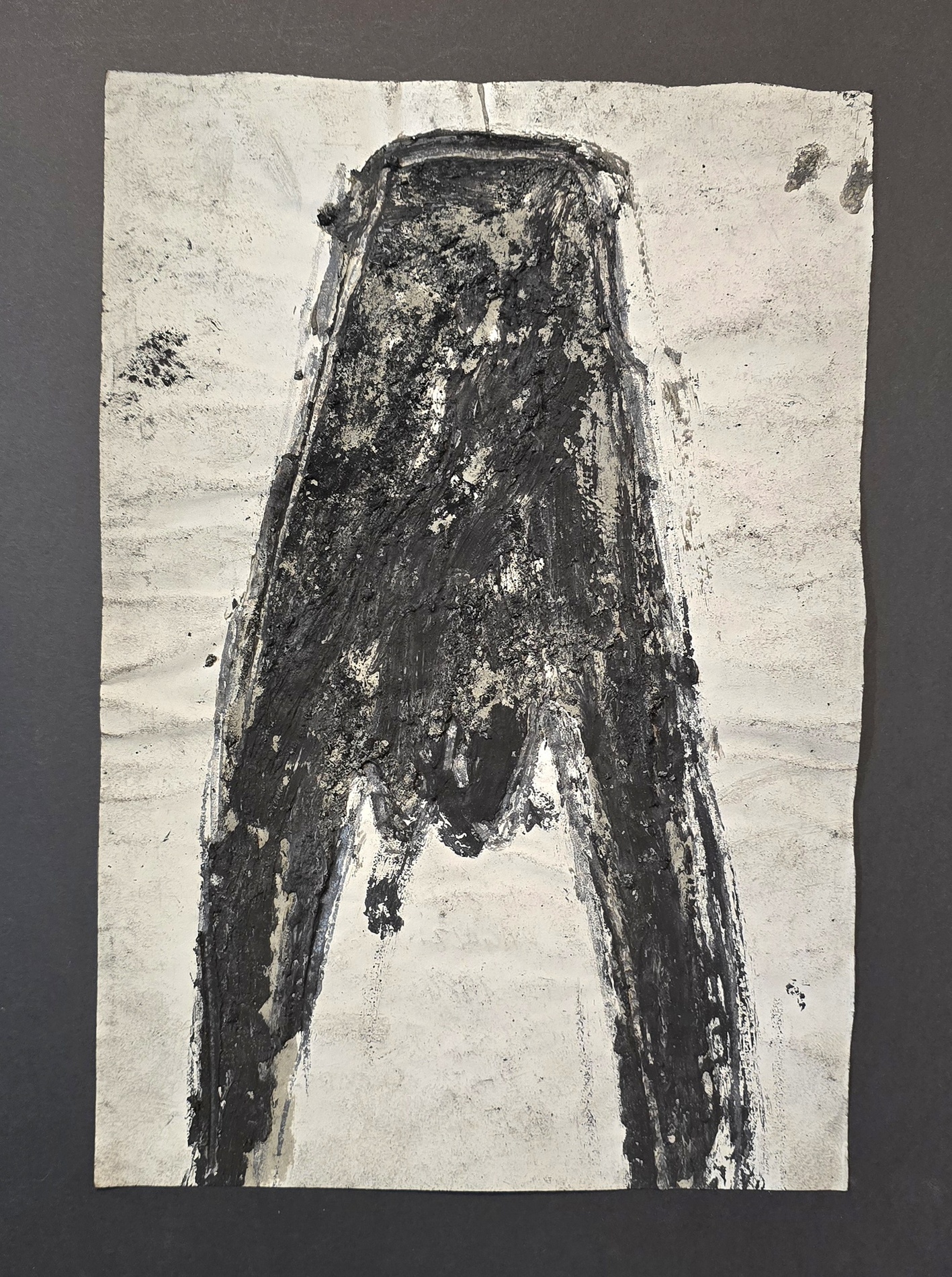 Ombra 1986, tecnica mista,bitume e olio su carta, firmato al retro .