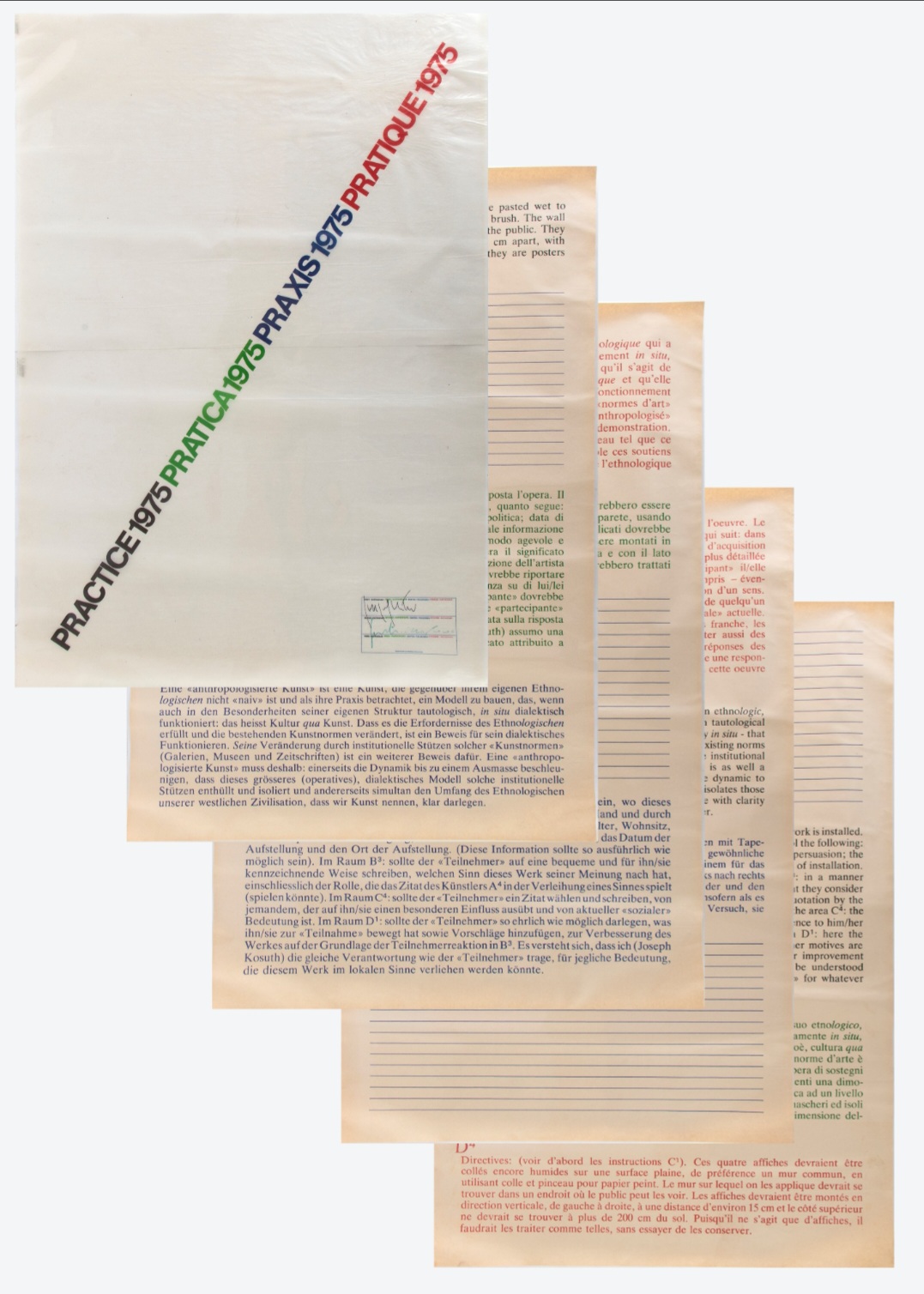 JOSEPH KOSUTH, "Practice" 1975 5 serigrafie a colori su carta, la prima...