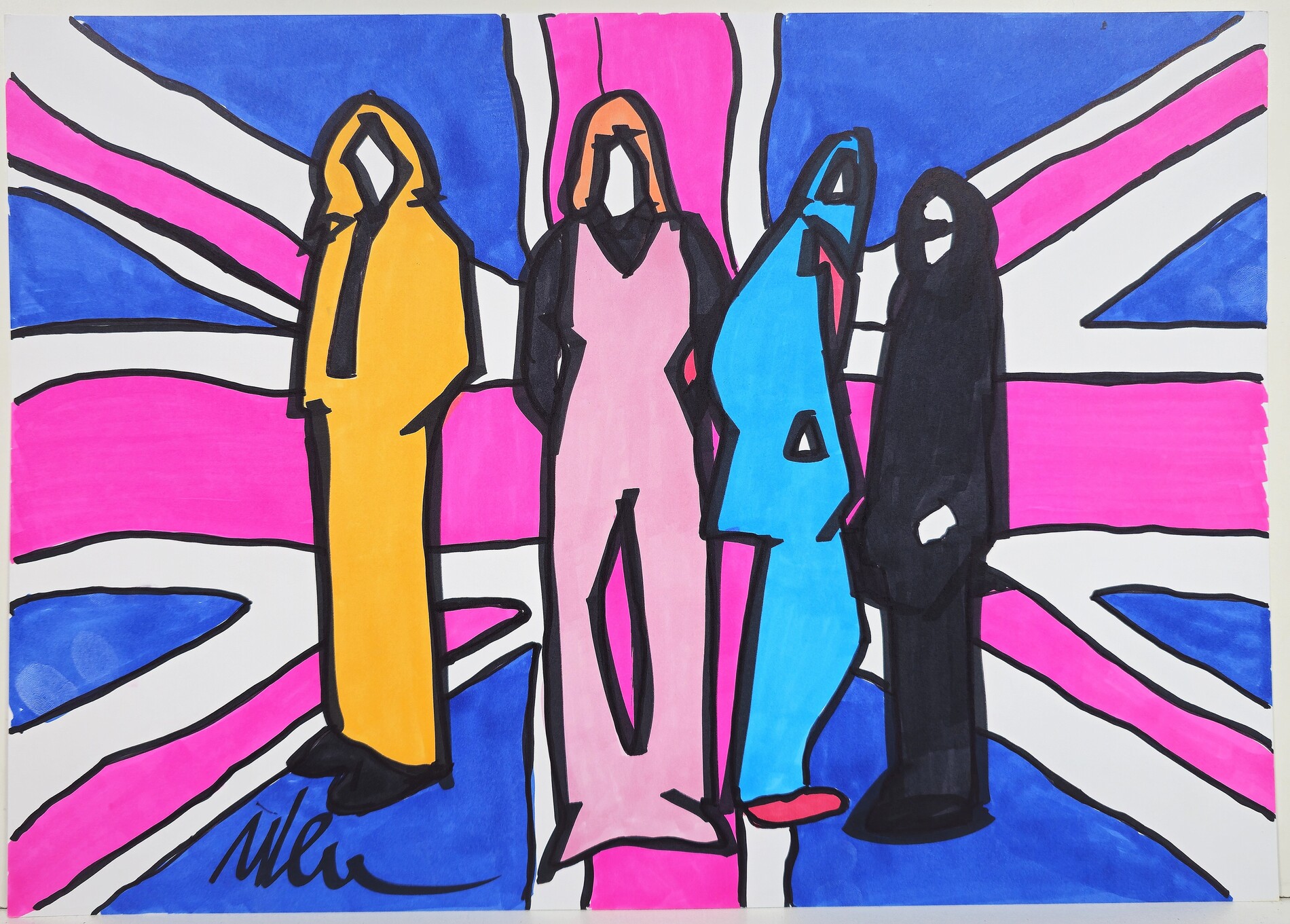 MARCO LODOLA, 30 X 42 cm, Senza Titolo, pennarelli su cartoncino, firma in basso a sinistra. Autentica dell'artista su fotografia