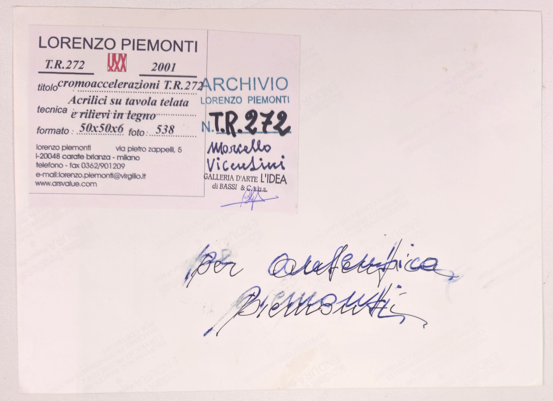 LORENZO PIEMONTI, 50 X 50 X 6 cm, ”Cromoaccelerazioni T.R.272" Acrilico e...