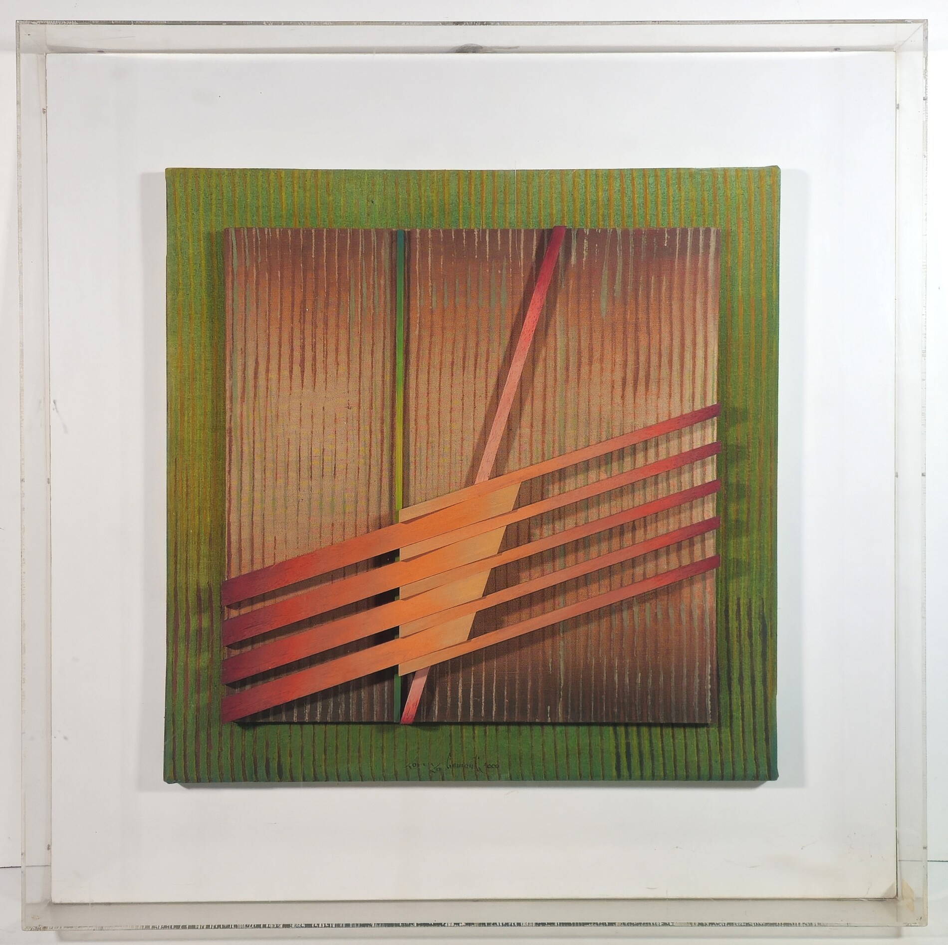 LORENZO PIEMONTI, 50 X 50 X 6 cm, ”Cromoaccelerazioni T.R.272" Acrilico e rilievi su tavola telata, Timbro Firma titolo anno e numero di archivio al retro. Autentica a cura dell'archivio Lorenzo Piemonti su fotografia. Opera entro teca in plexiglass