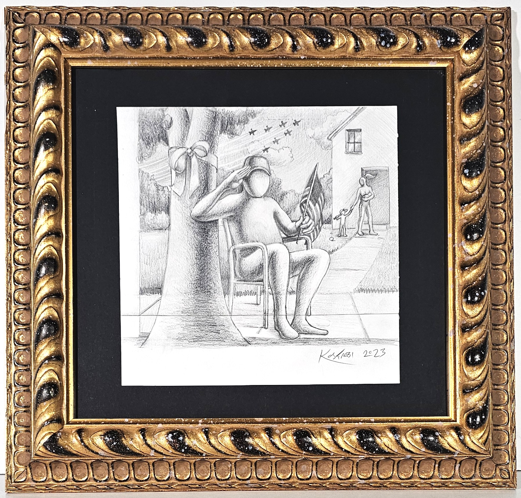 MARK KOSTABI, 28 X 28 cm, ”Home Again" matita su due fogli di carta uniti da...