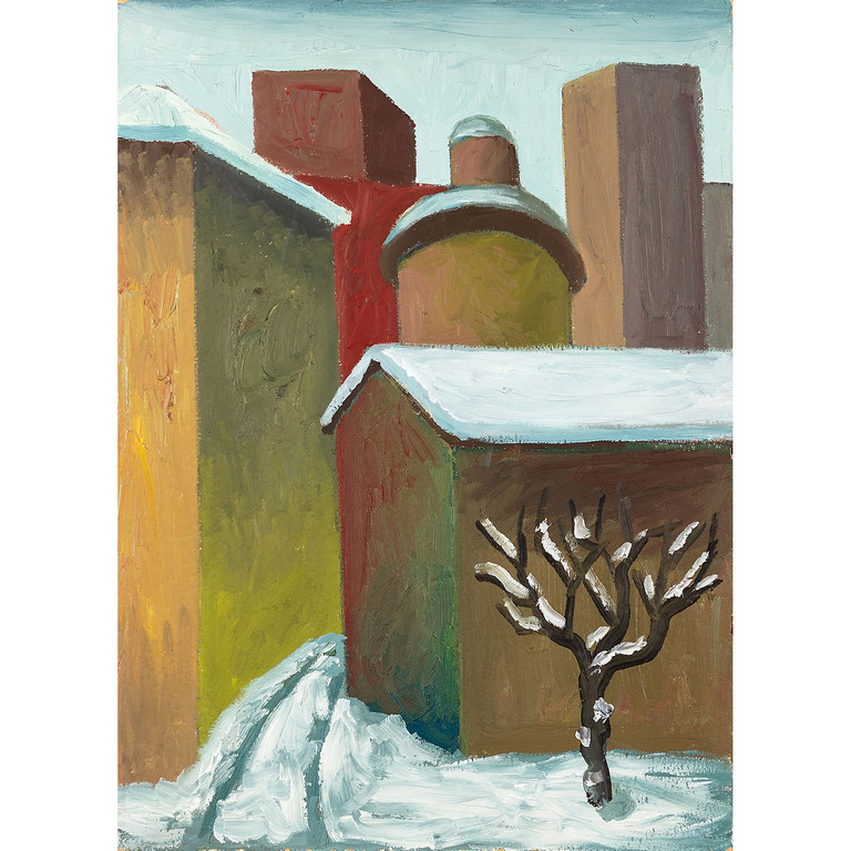 oil on cardboard 13 38x9 44 in