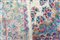 Una fitta e ricca ornamentazione floreale con rami fioriti decora il fondo bianco, il medaglione centrale e la bordura in colorazioni di carattere pastello. Cartiglia con firma.