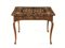 in noce intarsiato, piano rettangolare centrato da grande riserva sagomata con composizioni floreali di tulipani e peonie fra volute di foglie di acanto, un cassetto nella fascia, gambe sinuose su piedi a zoccolo stilizzato, cm 79x78x97, piccole mancanze