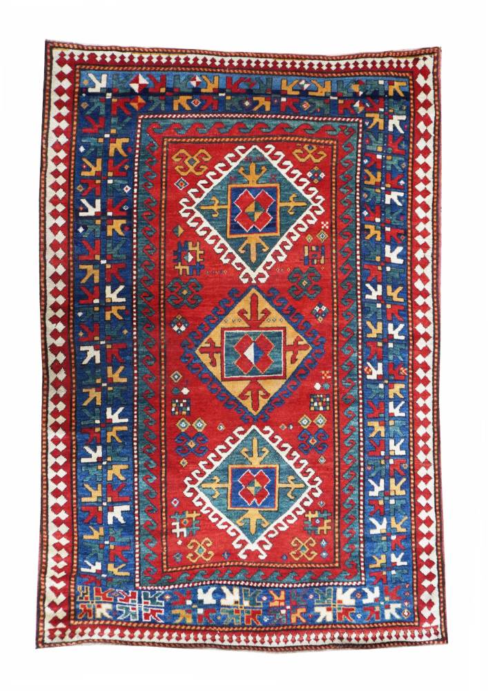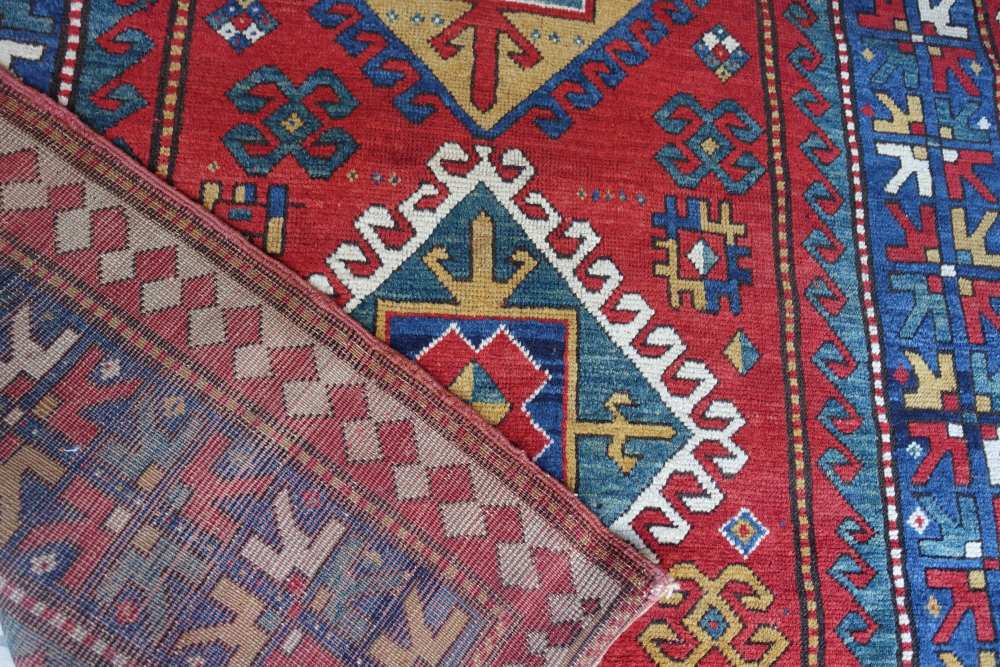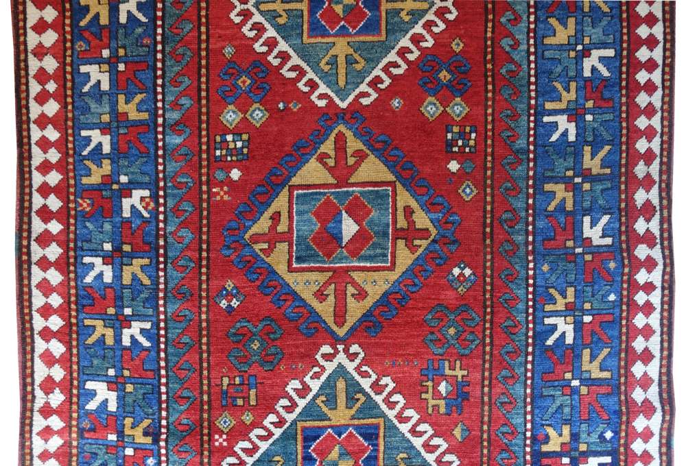 Il Kazak dispone di una colorazione particolarmente avvincente con colori saturi e brillanti, che si abbinano in modo perfetto alle ornamentazioni grintose ed arcaiche.