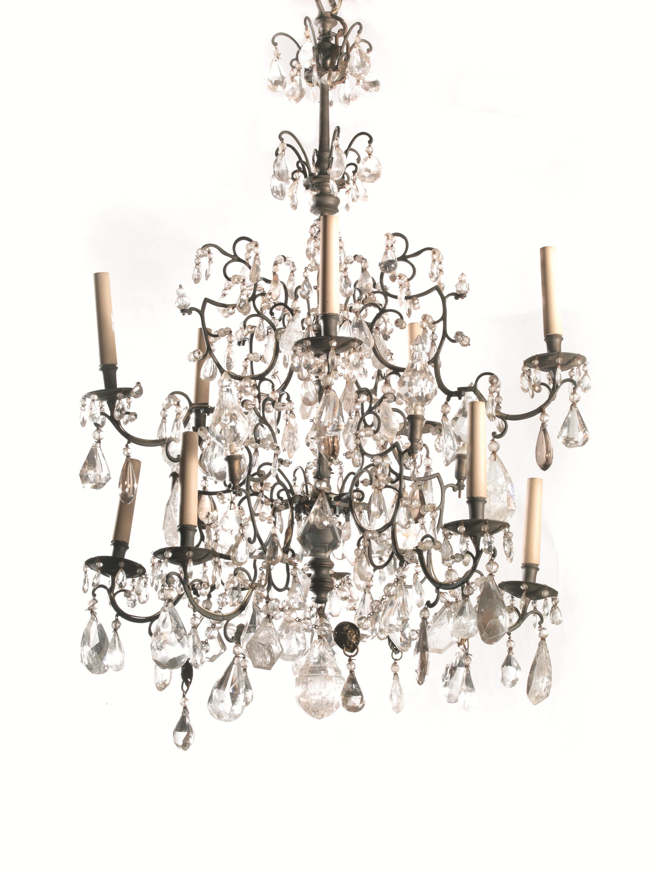 LUMIERA, INIZI SECOLO XIXin bronzo, con collane e pendenti in cristallo di...