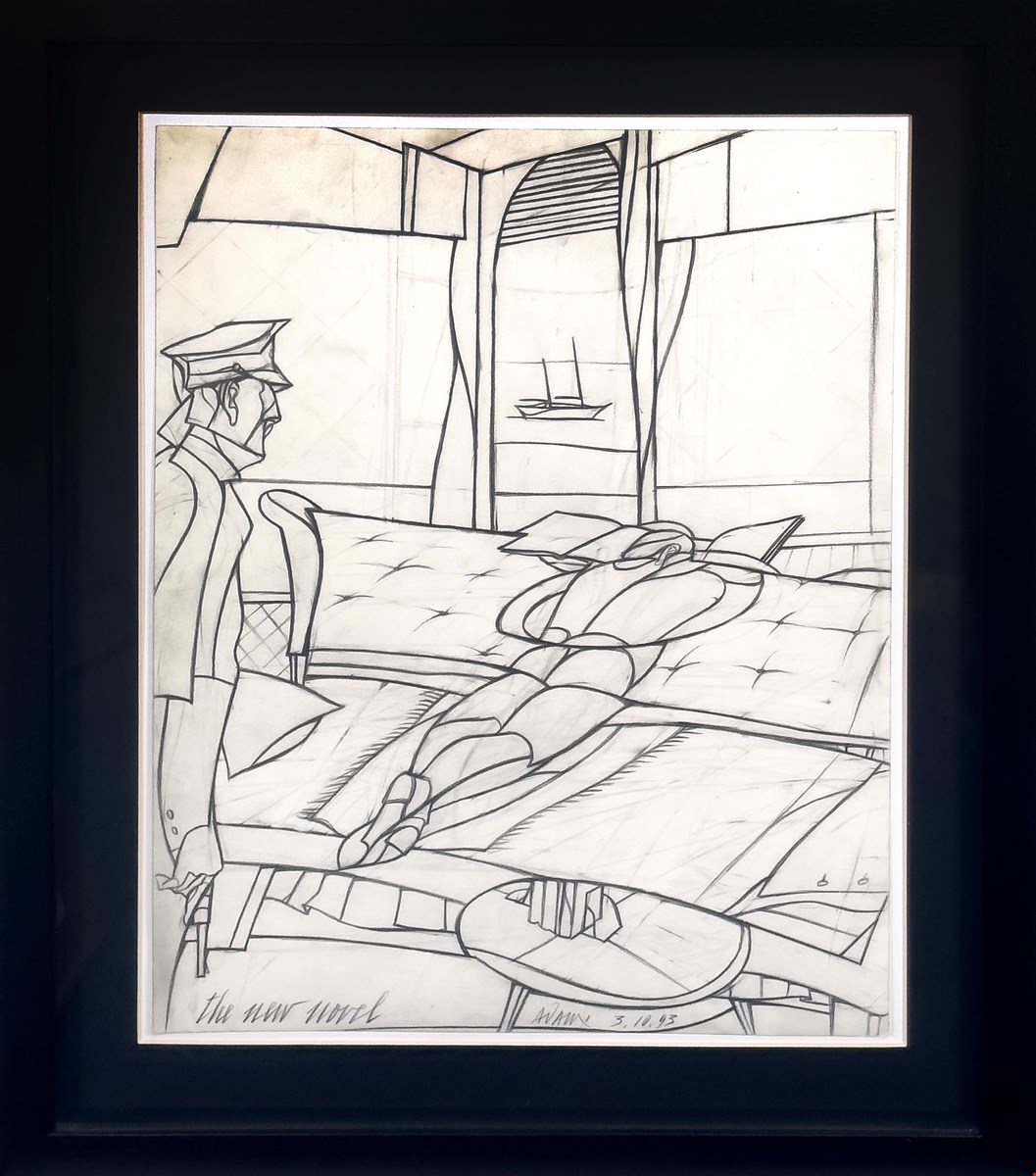 Matita su carta 48x36 Archivio Valerio Adami su fotografia, repertorio numero 723 - Firma, data e titolo al recto.
