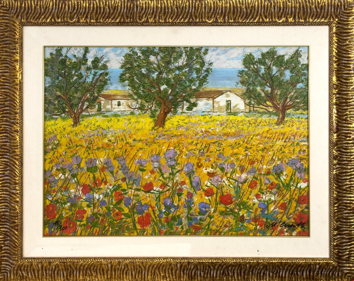 Serigrafia e litografia a 36 passaggi di colore 50x70 Multiplo eseguito su tela in 300 numeri arabi e C numeri romani - Esemplare: 15 di 300 - Firma al recto in basso a destra, numerazione al recto in basso a sinistra, numerata di pugno al verso.