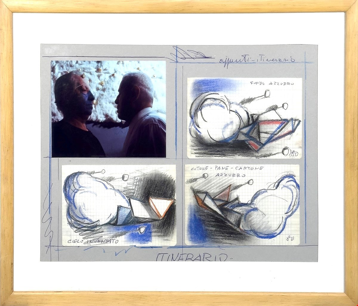 Disegno e collage su cartone 36x50,5 Autentica dell'autore su fotografia - Titolo al recto - Firma, data e titolo al verso.