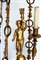a sei luci, corpo centrale a coppa sormontato. da putto porta torcia, sostegni a catene ornamentali con elementi ad anelli e decori floreali;bracci mossi terminanti in elementi a forma di cigno, applicazioni figurate a cariatidi e motivi a stelle e fregi fitoformi.