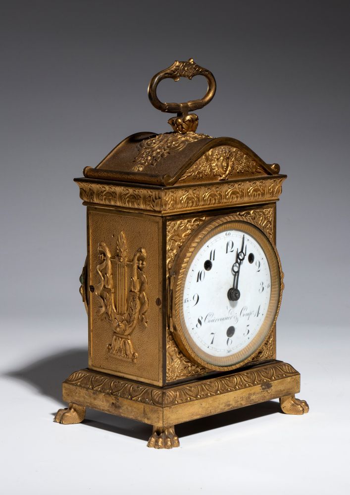 Courvoisier & Comp Pendola da tavolo in bronzo dorato epoca Impero - Francia, primi decenni del XIX secolo