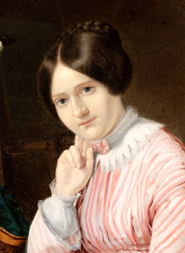 Ritratto di giovane dama seduta con vaso di fiori Francia, XIX secolo