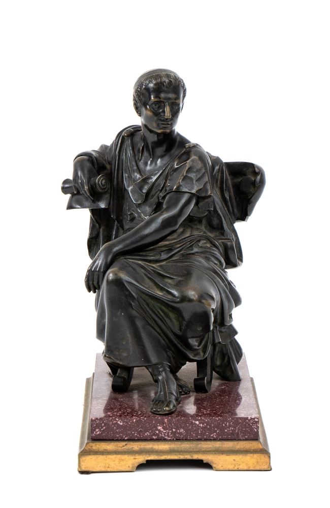 Scultura gran tour in bronzo raffigurante imperatore romano Italia, XIX secolo
