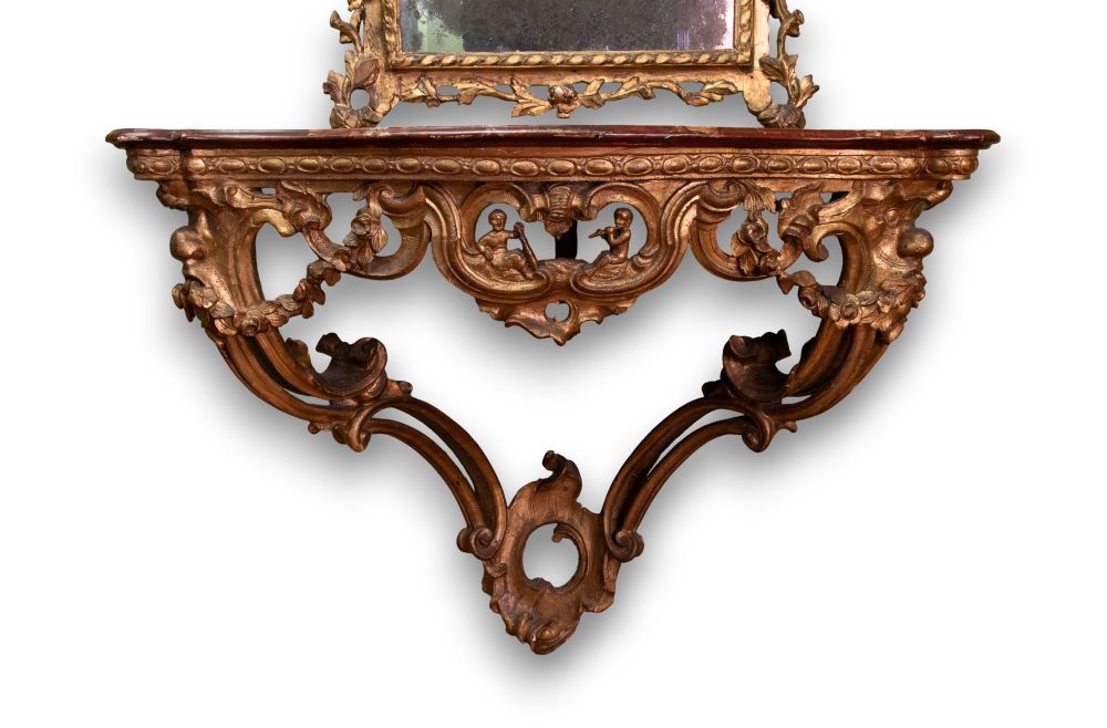Specchiera con console in legno intagliato e dorato - Venezia, metà XVIII secolo