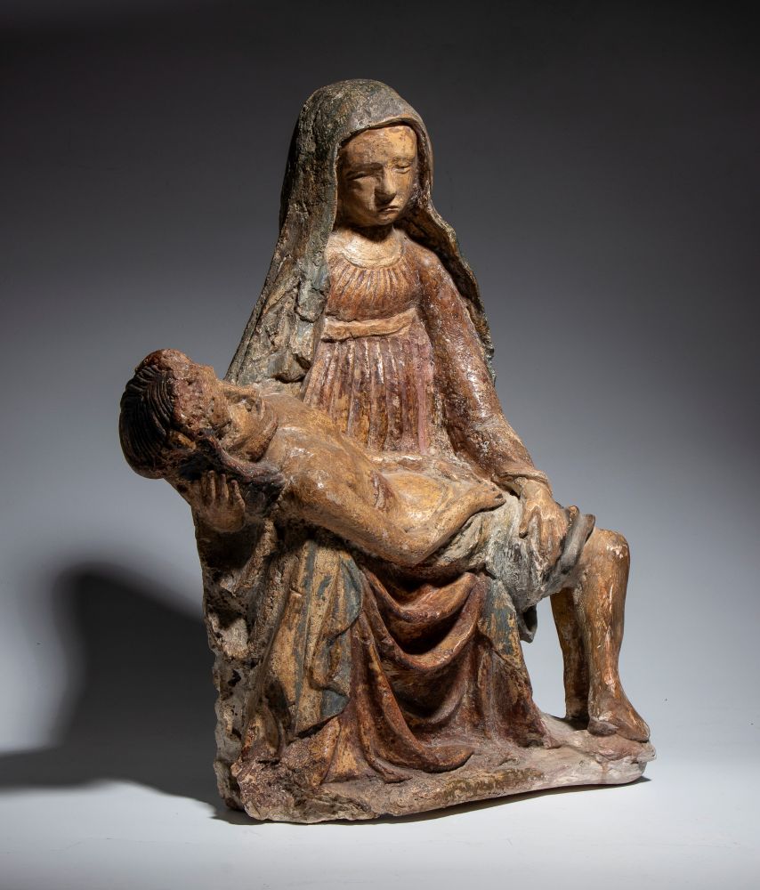 Scultura in stucco policromato raffigurante la Pietà Italia centrale, XV secolo