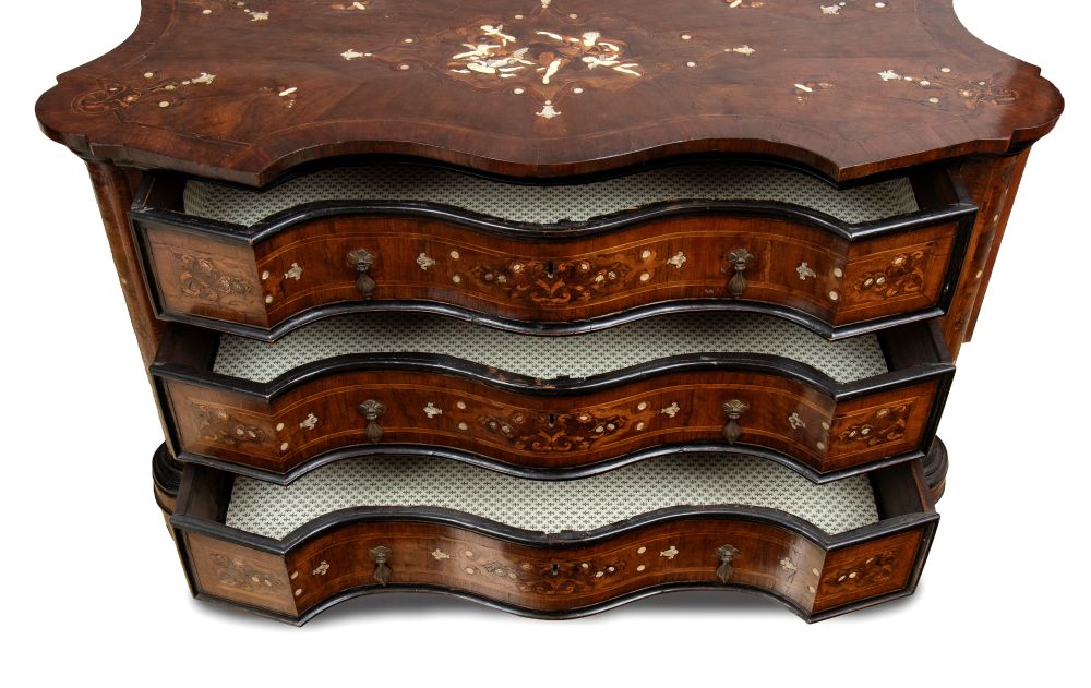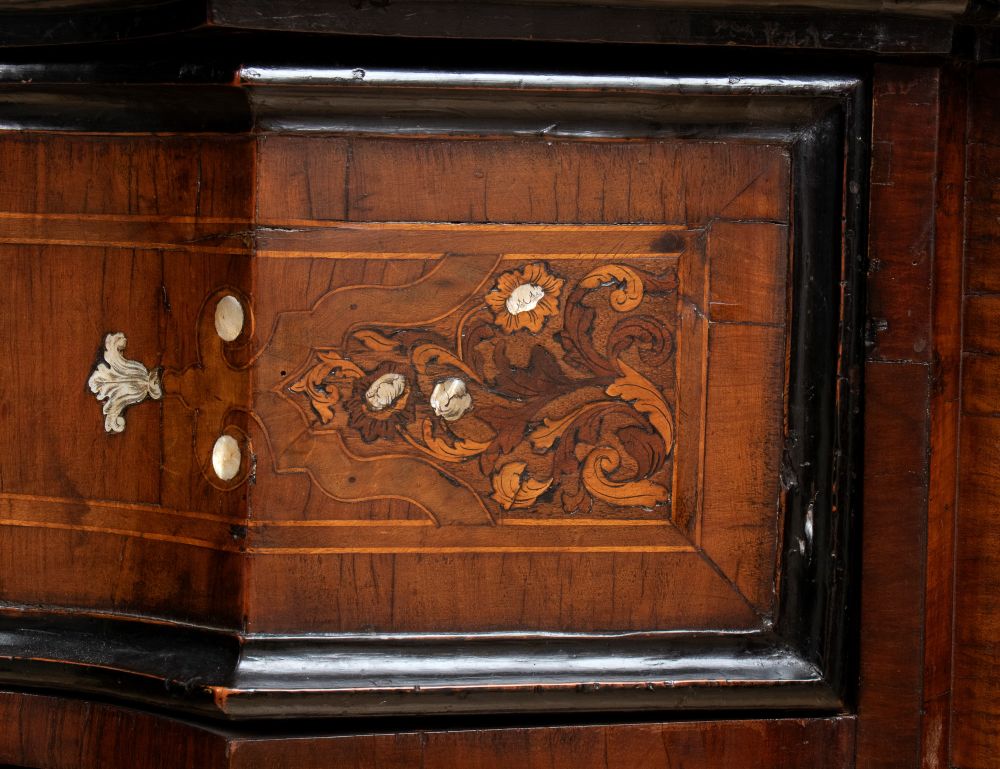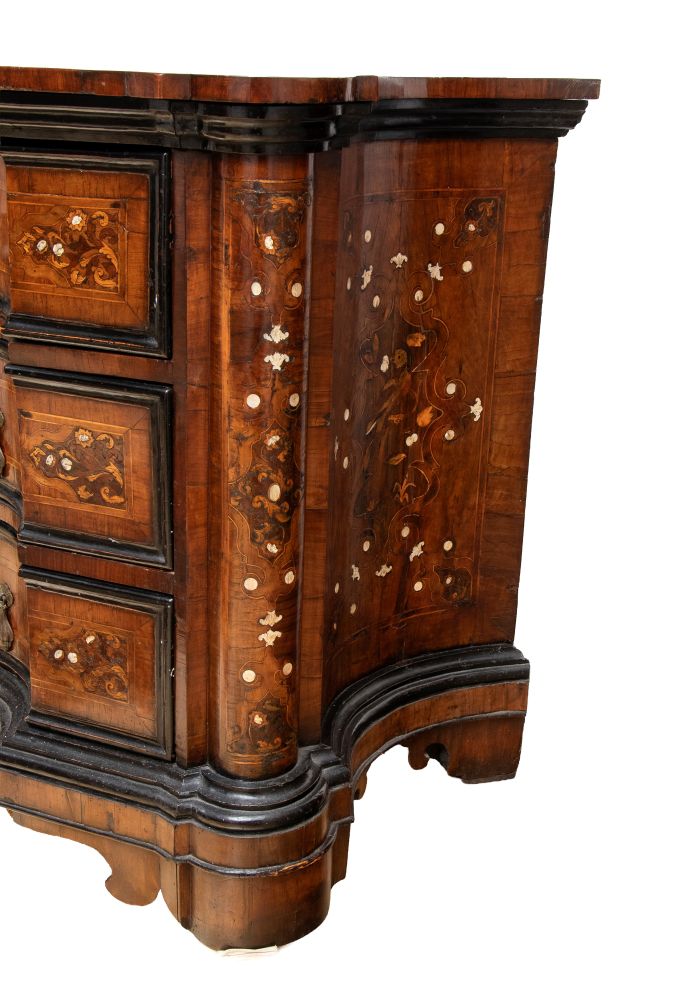 Comò mosso lastronato e intarsiato in osso - Area lombardo-veneta, XVIII secolo
