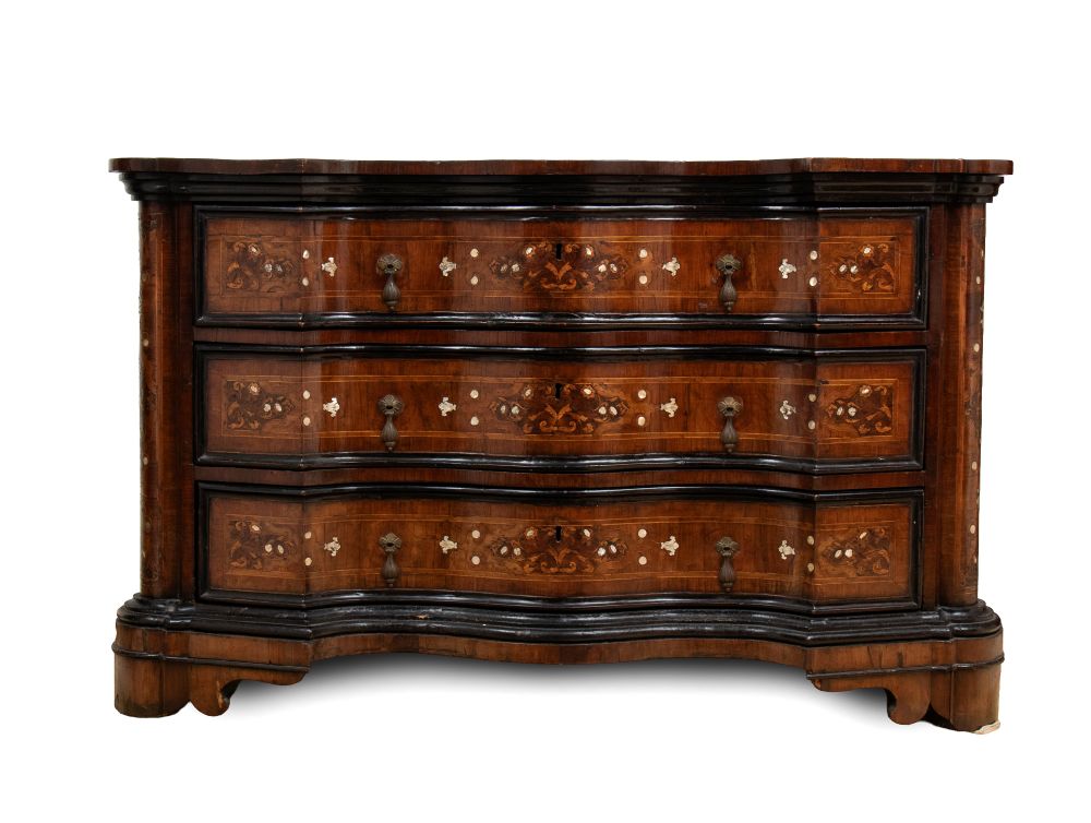Lotto 105 | Comò mosso lastronato e intarsiato in osso - Area lombardo-veneta, XVIII secolo